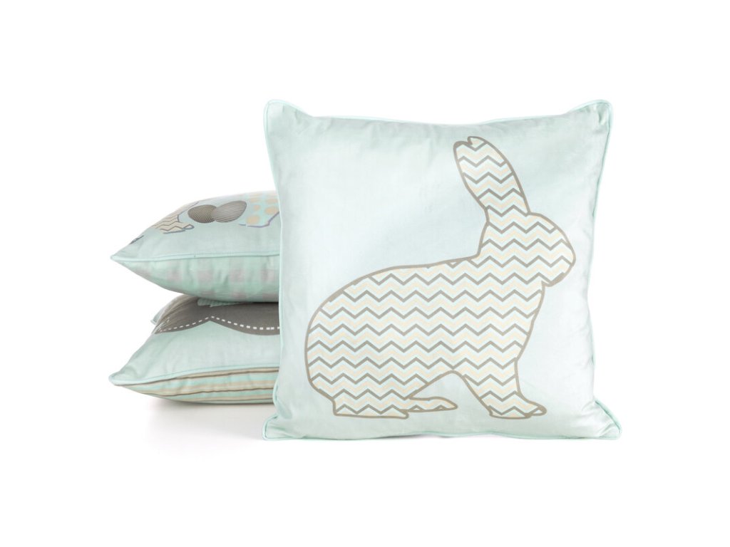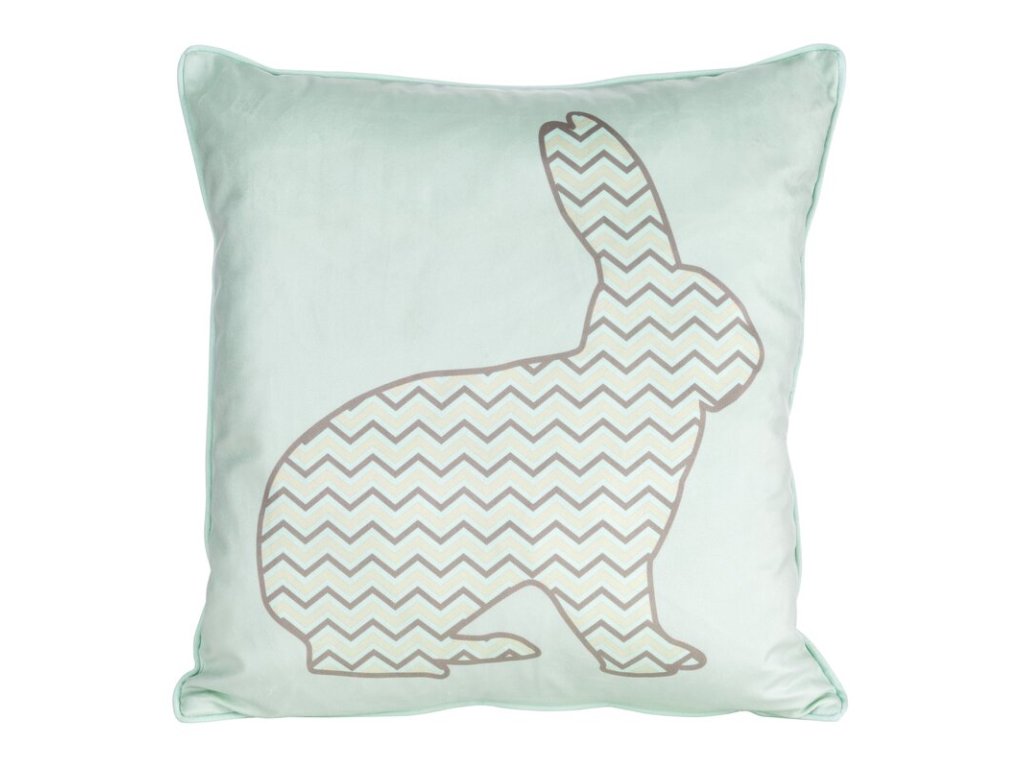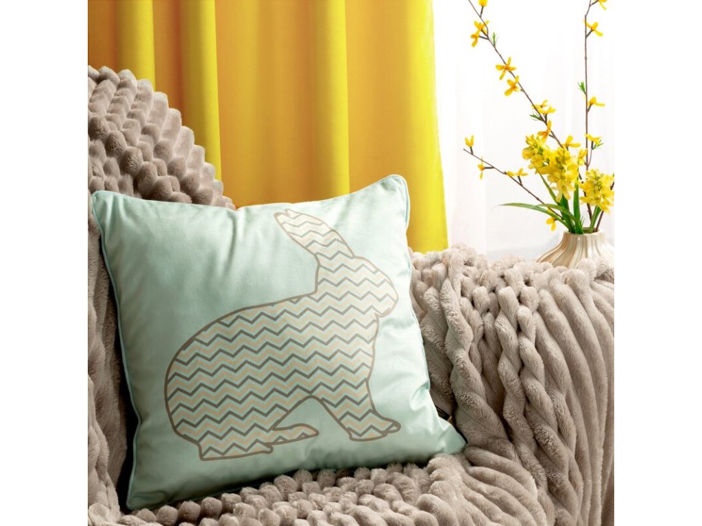 Je vyrobena z měkké, na dotek příjemné velurové tkaniny a dodá vašemu interiéru útulný a stylový nádech. Její pastelový povrch zdobí rozkošný zajíček, který dokonale ladí s velikonočními aranžmá.