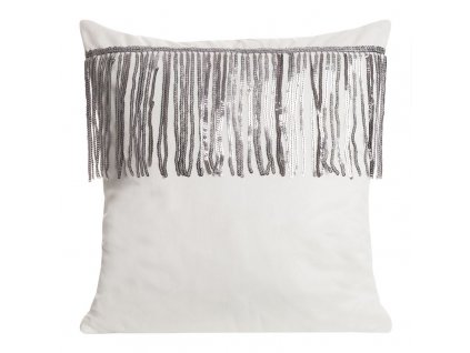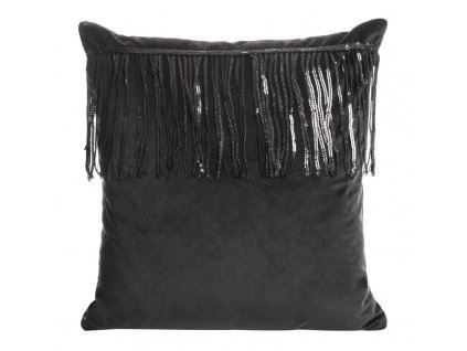 Sametový dekorační povlak na polštář s třásněmi v šedé barvě