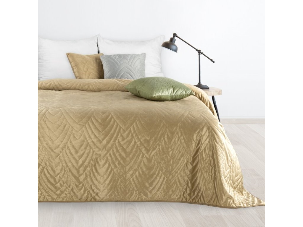 Sametový přehoz na postel LUIZ 6 v béžové barvě