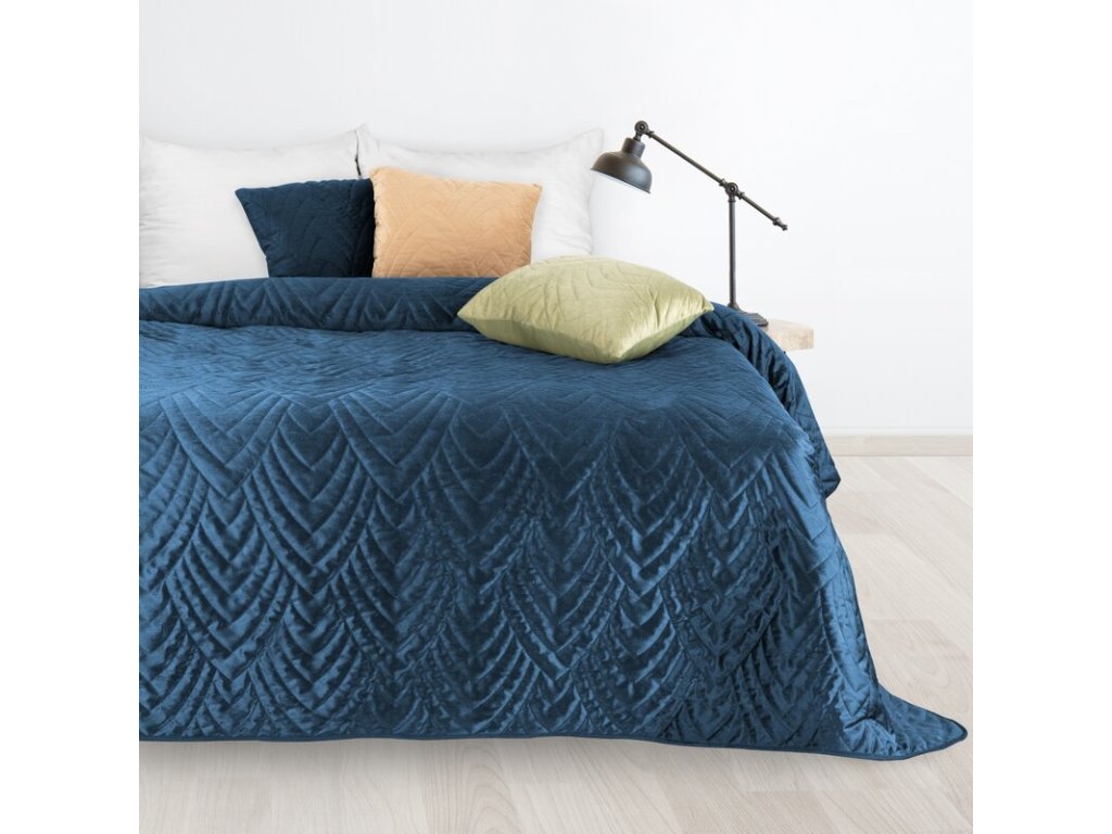Sametový přehoz na postel LUIZ 6 v granátově modré barvě