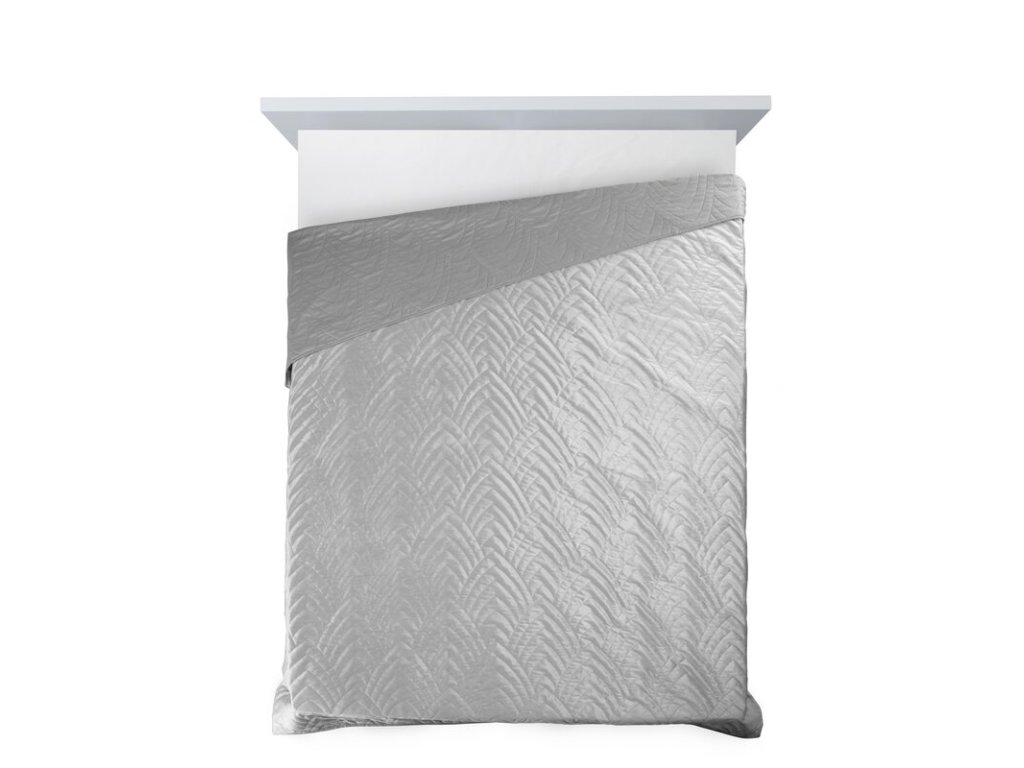 Sametový přehoz na postel LUIZ 6 ve stříbrné barvě