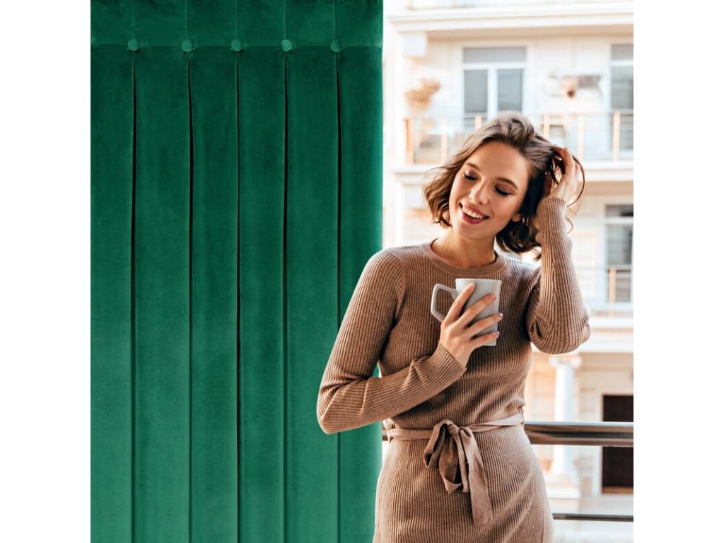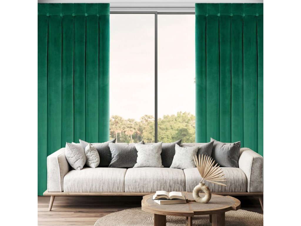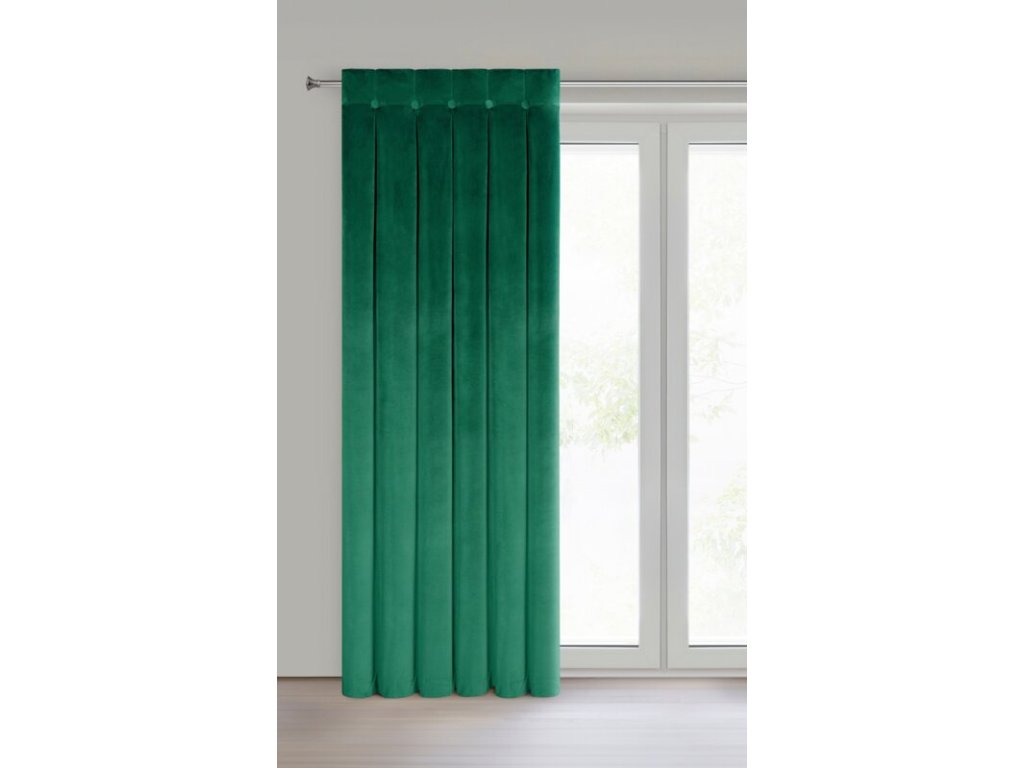 Sametový tmavě zelený závěs ALITA s ozdobnými knoflíky 140x250cm
