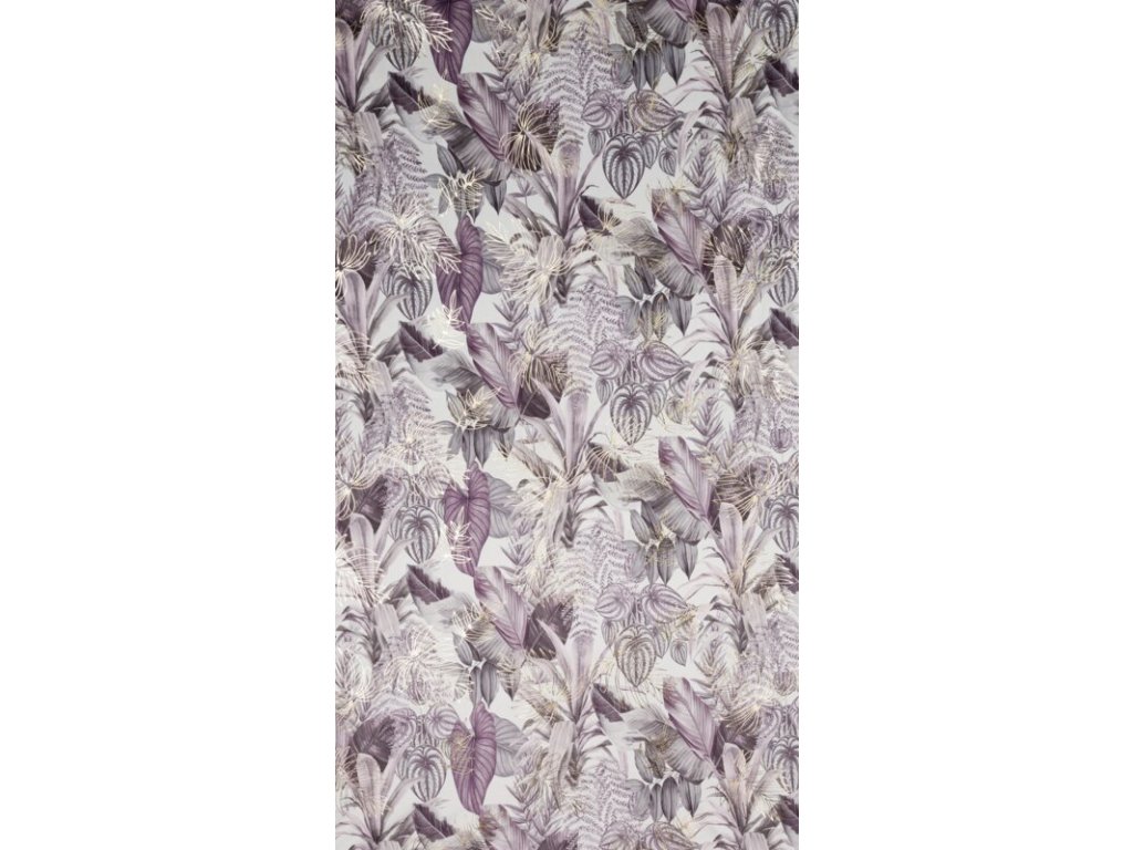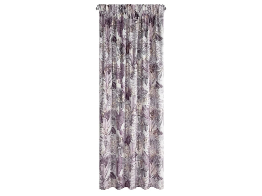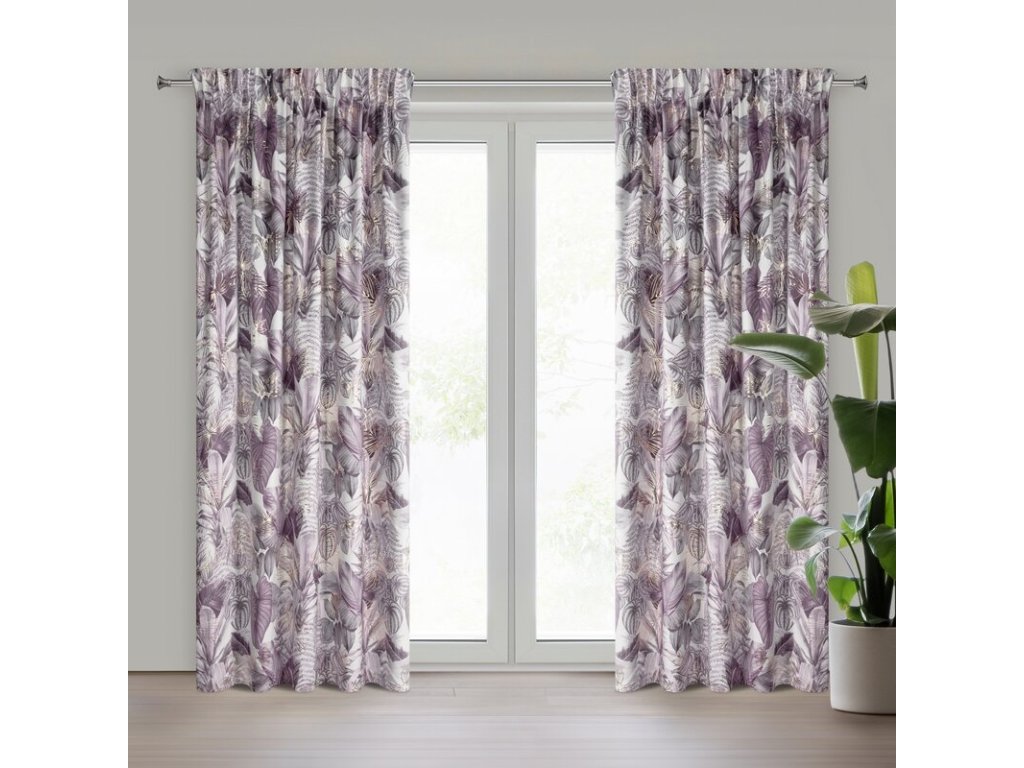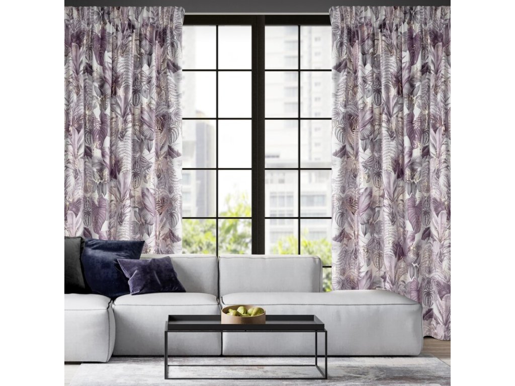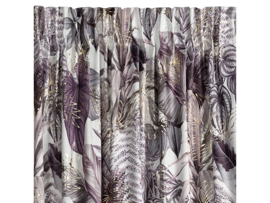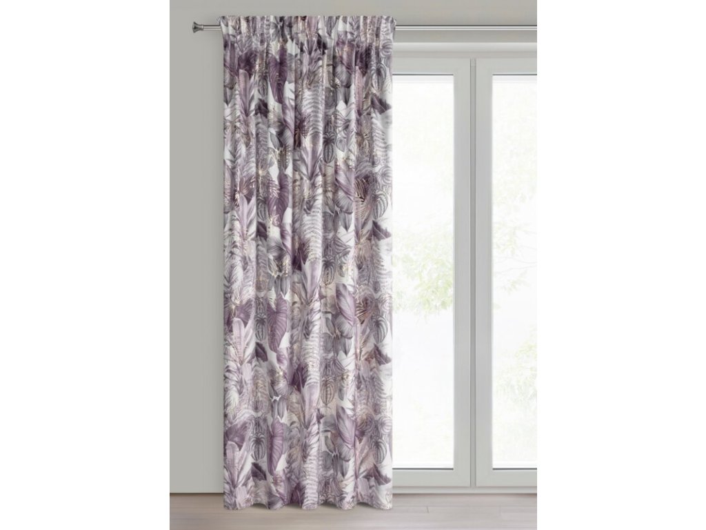 Sametový závěs DAVOS s rostlinným potiskem - fialový