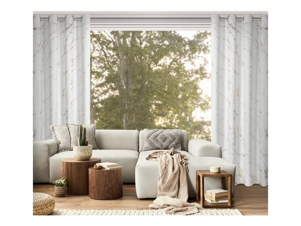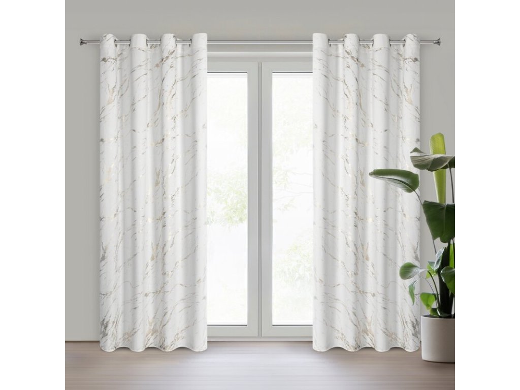 Zvyšte šik elegantního interiéru sametovými závěsy s lesklým mramorovým vzorem.
