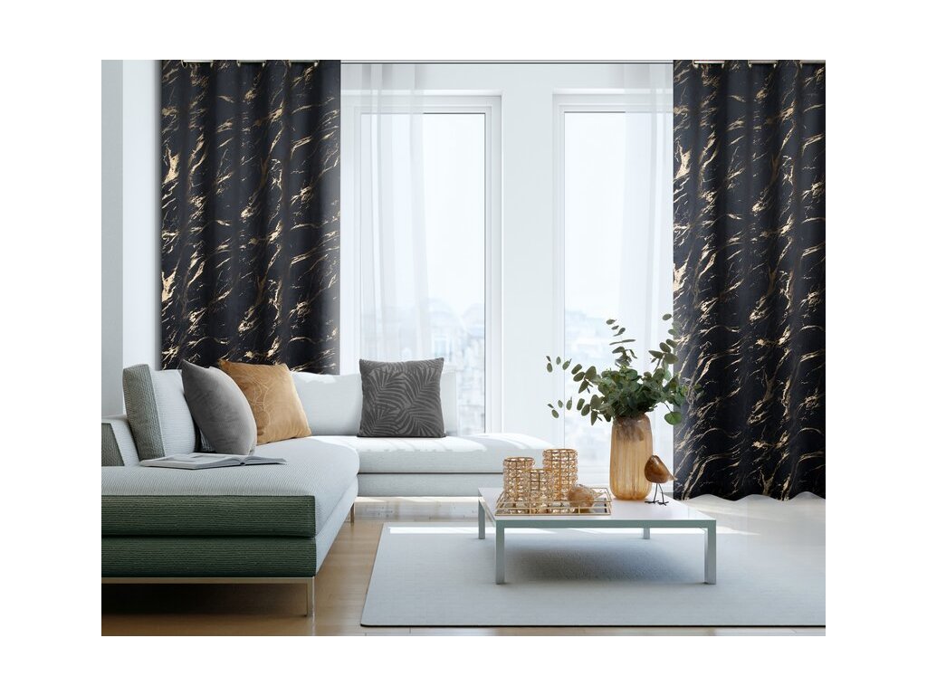 Závěs MOLLY s reliéfním zlatým potiskem na měkké sametové tkanině dodá interiéru elegantní a módní dekorativní nádech.
