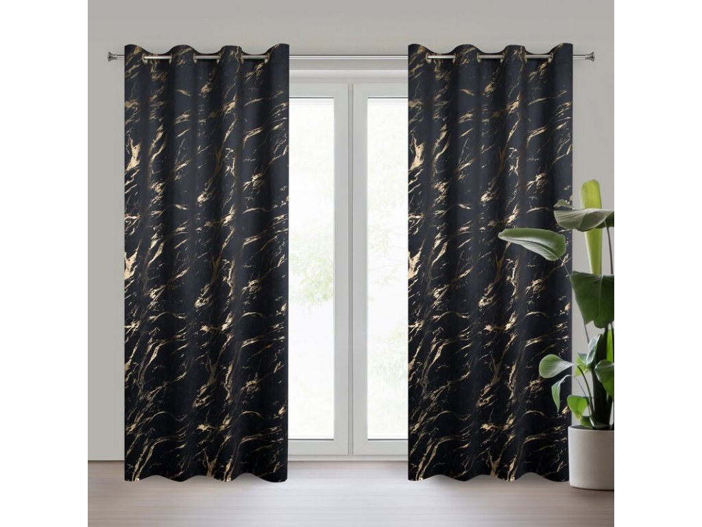 Zvyšte šik elegantního interiéru sametovými závěsy s lesklým mramorovým vzorem.