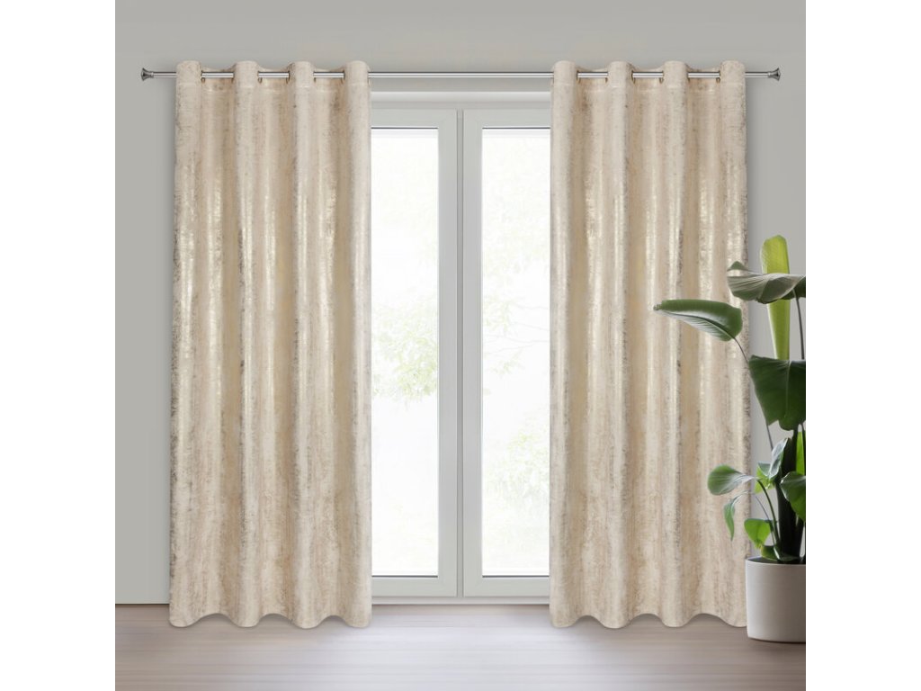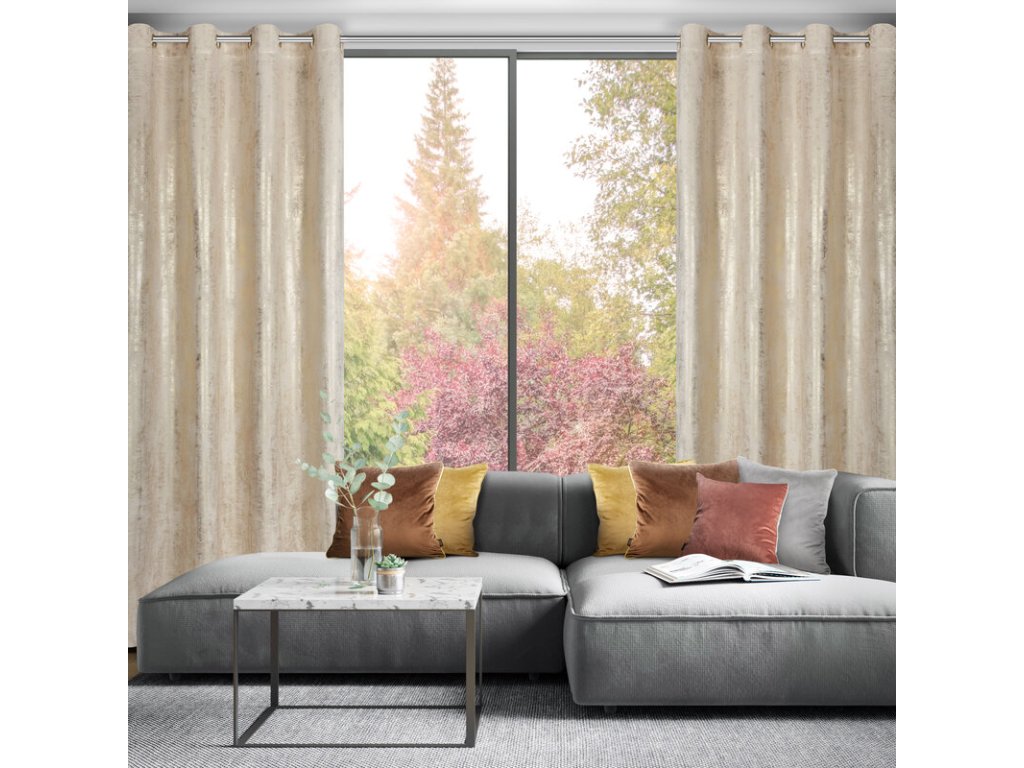 Sametový závěs na kolečkách RENIA s lesklým potiskem - světle béžový