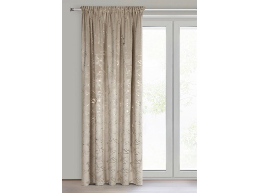 Sametový závěs RÁJE na řasící pásce 140 x 270 cm v béžové barvě