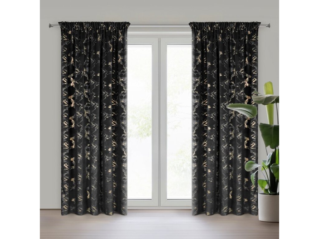 Sametový závěs RÁJE na řasící pásce 140 x 270 cm v černé barvě