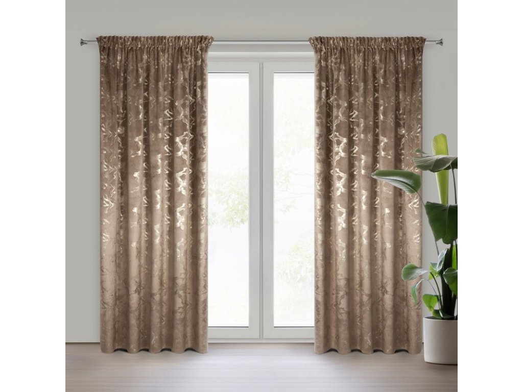 Sametový závěs RÁJE na řasící pásce 140 x 270 cm v hnědé barvě