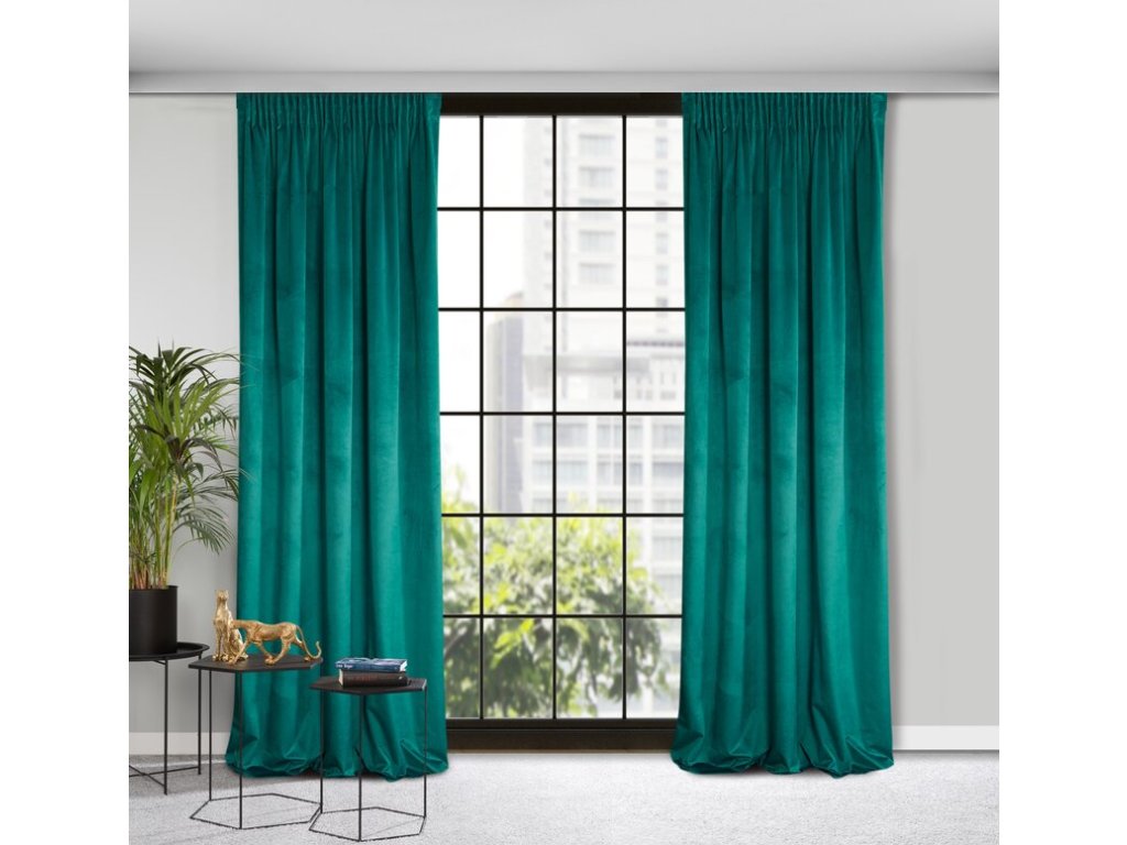 Sametový závěs ROSA na řasící pásku 140 x 270 cm - tmavě tyrkysový