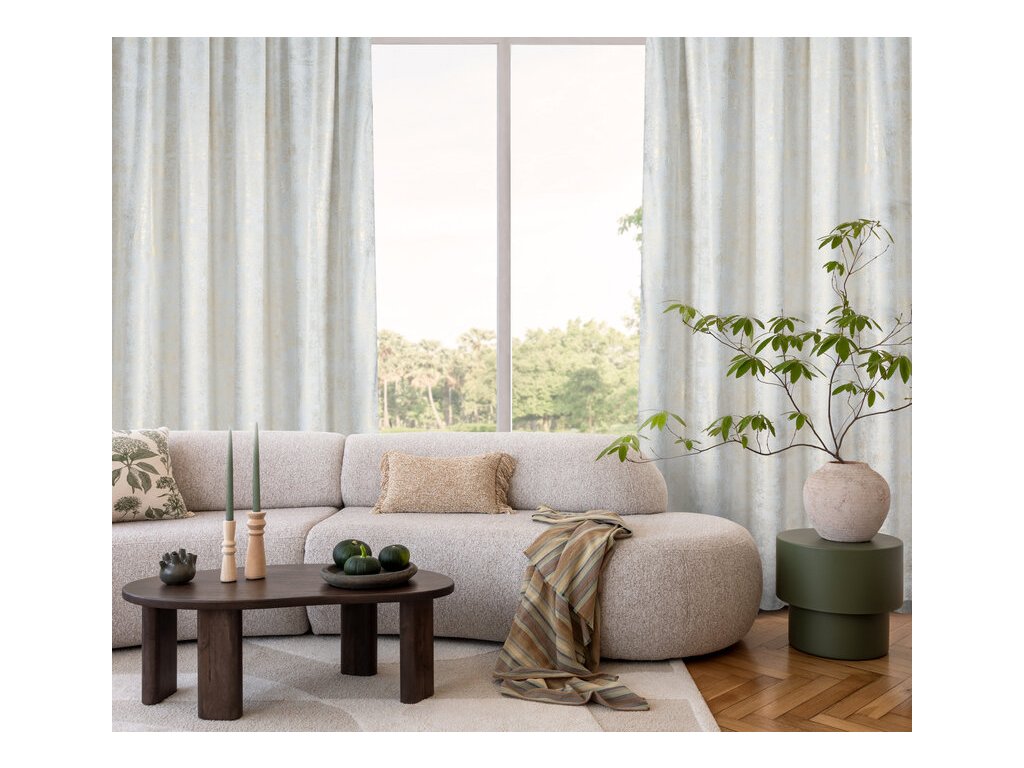 Dekorativní zlatý tečkovaný potisk dodává závěsu jedinečný charakter a jemný třpytivý efekt, který krásně odráží světlo. Díky tomu závěs oživí každý prostor a dodá mu nádech noblesy.