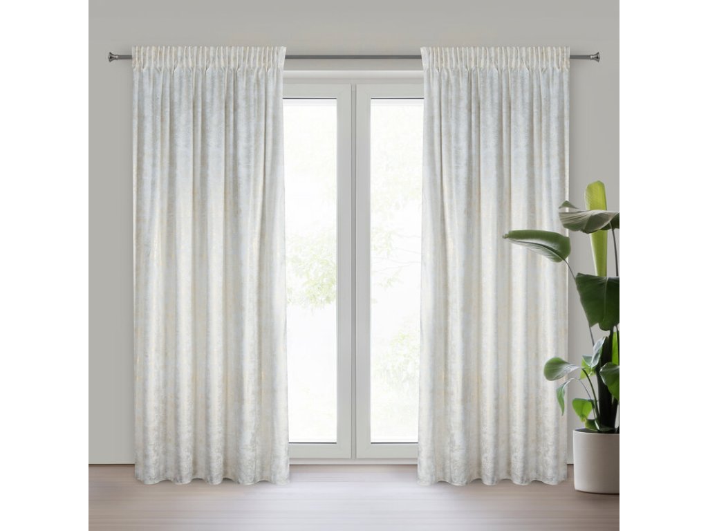 Sametový závěs v bílé barvě AVENA s tečkovaným zlatým potiskem 135x270 cm
