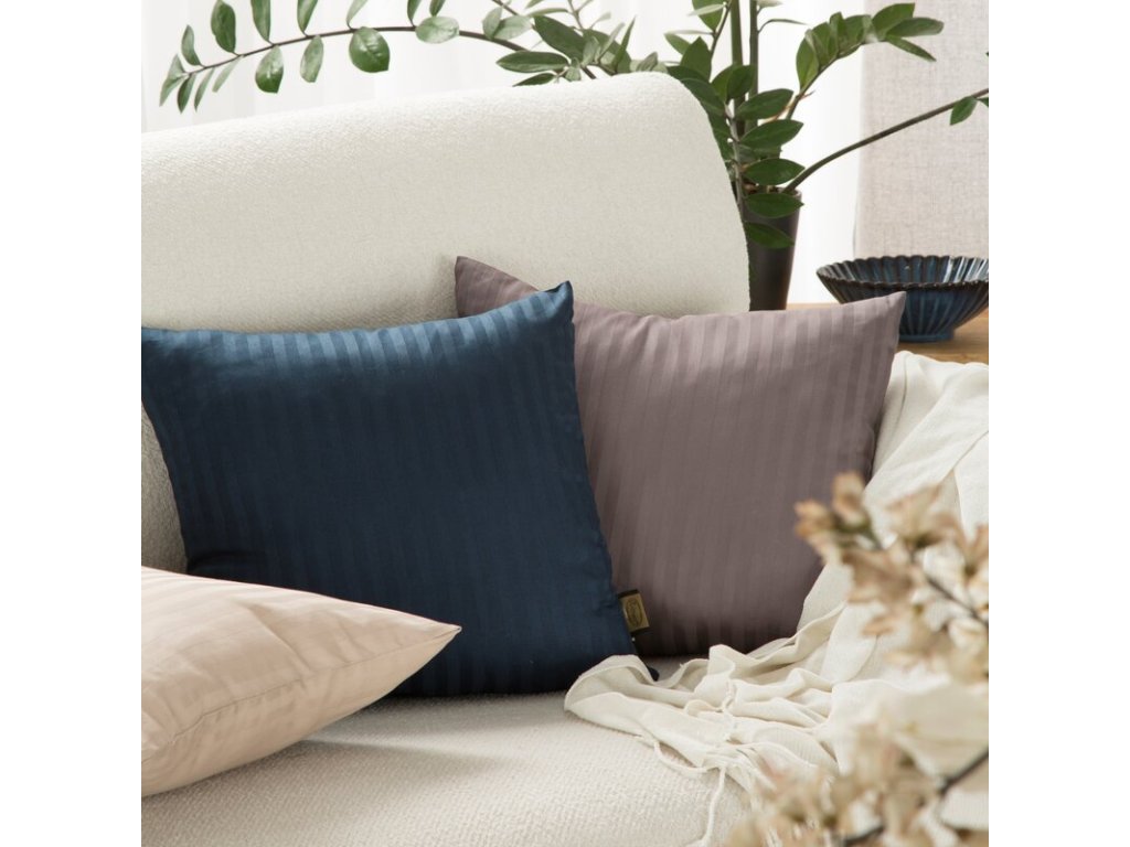 Saténový povlak na polštář VERA s jemnými proužky v mořské modré barvě