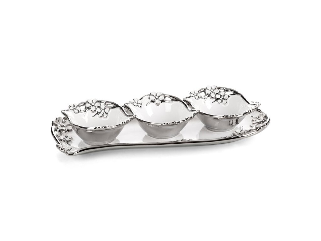 Servírovací tác se 3 miskami 39x18 cm - bílý