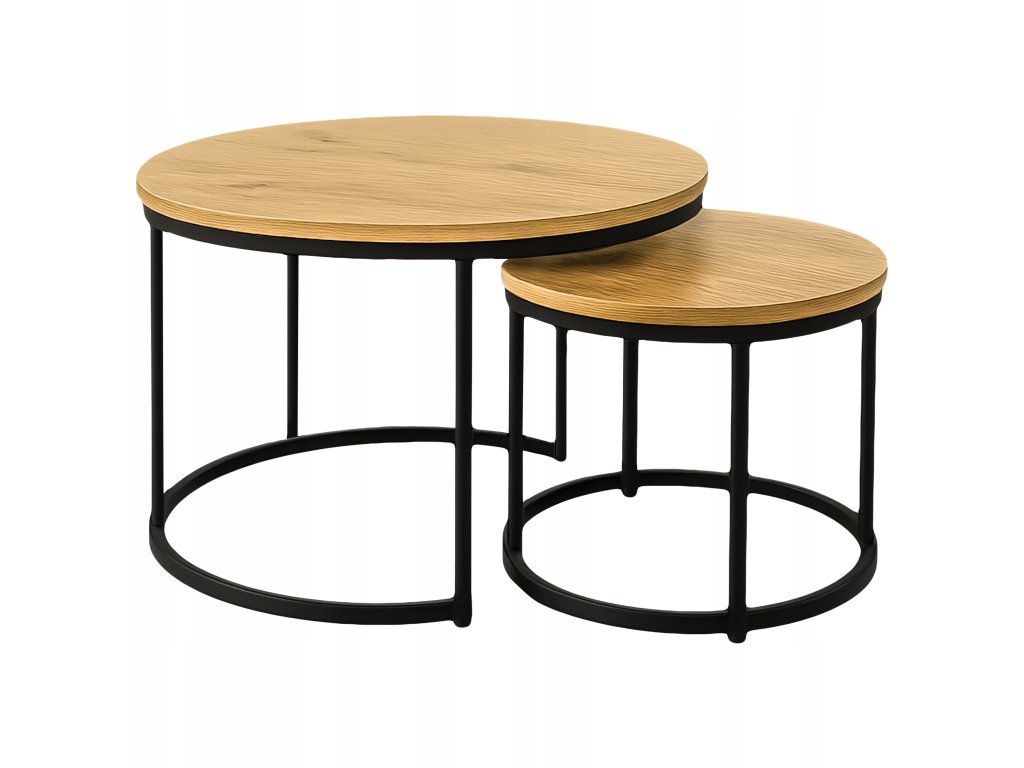 Set 2ks kávových stolků 70/50 - dub přírodní/černé nohy