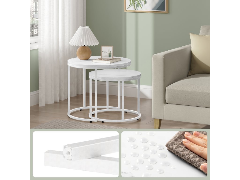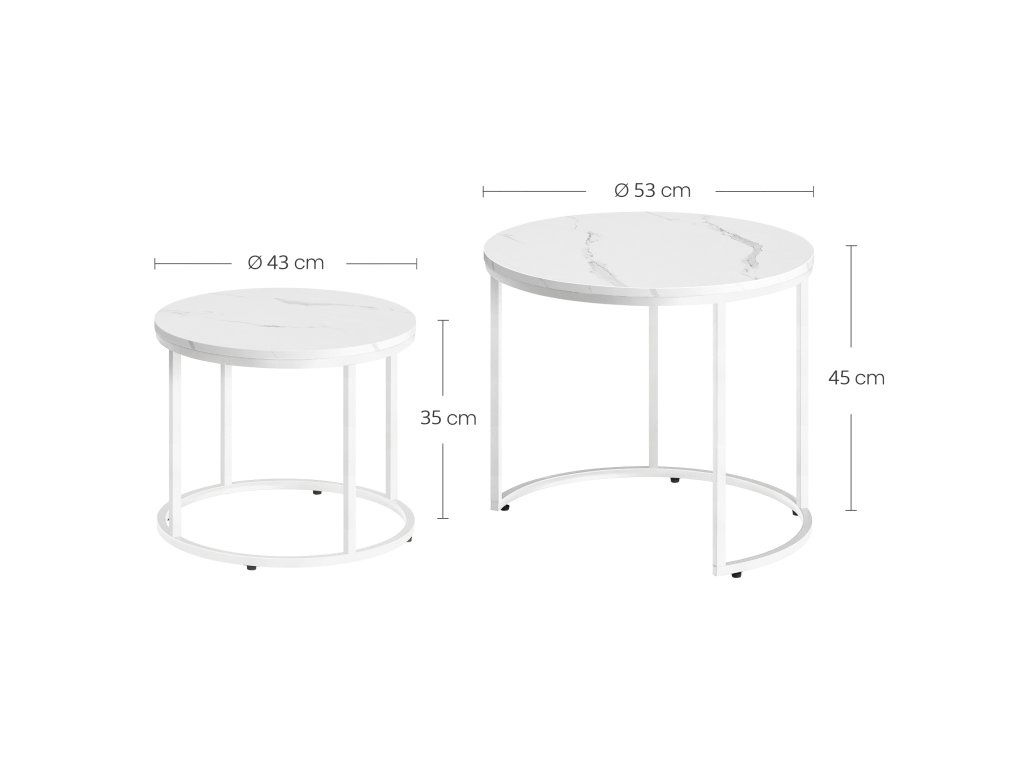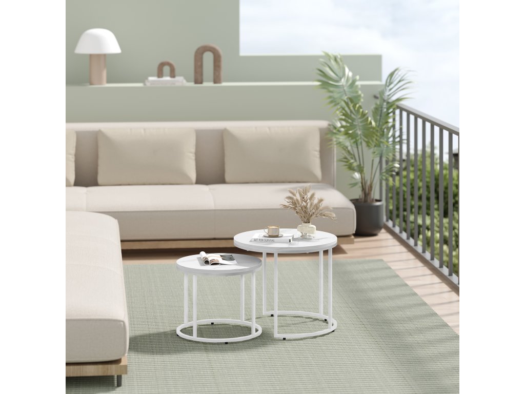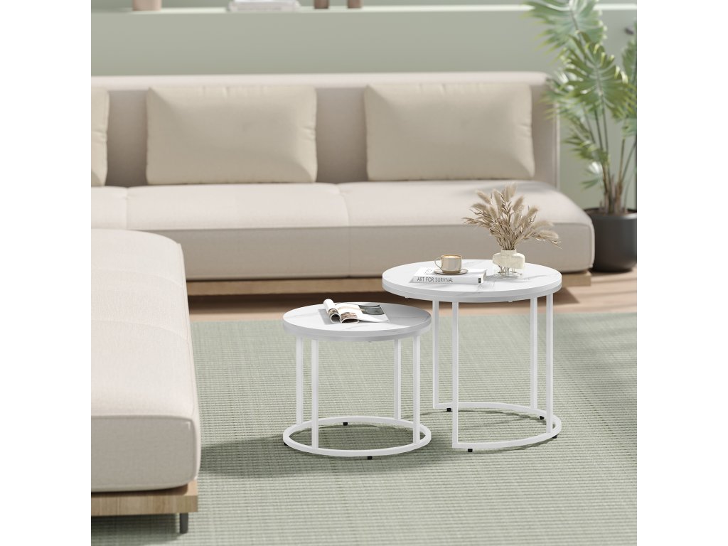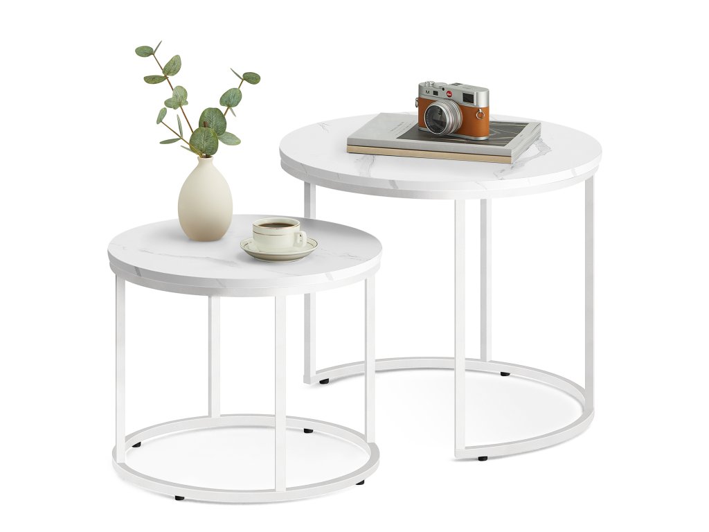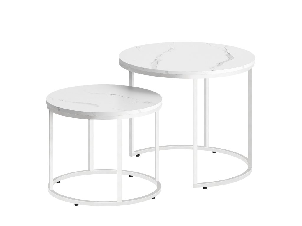 Set 2ks kávových stolků - mramor/bílé nohy