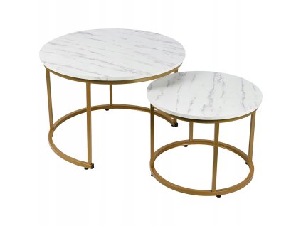 Set 2ks kávových stolků - mramor/zlaté nohy
