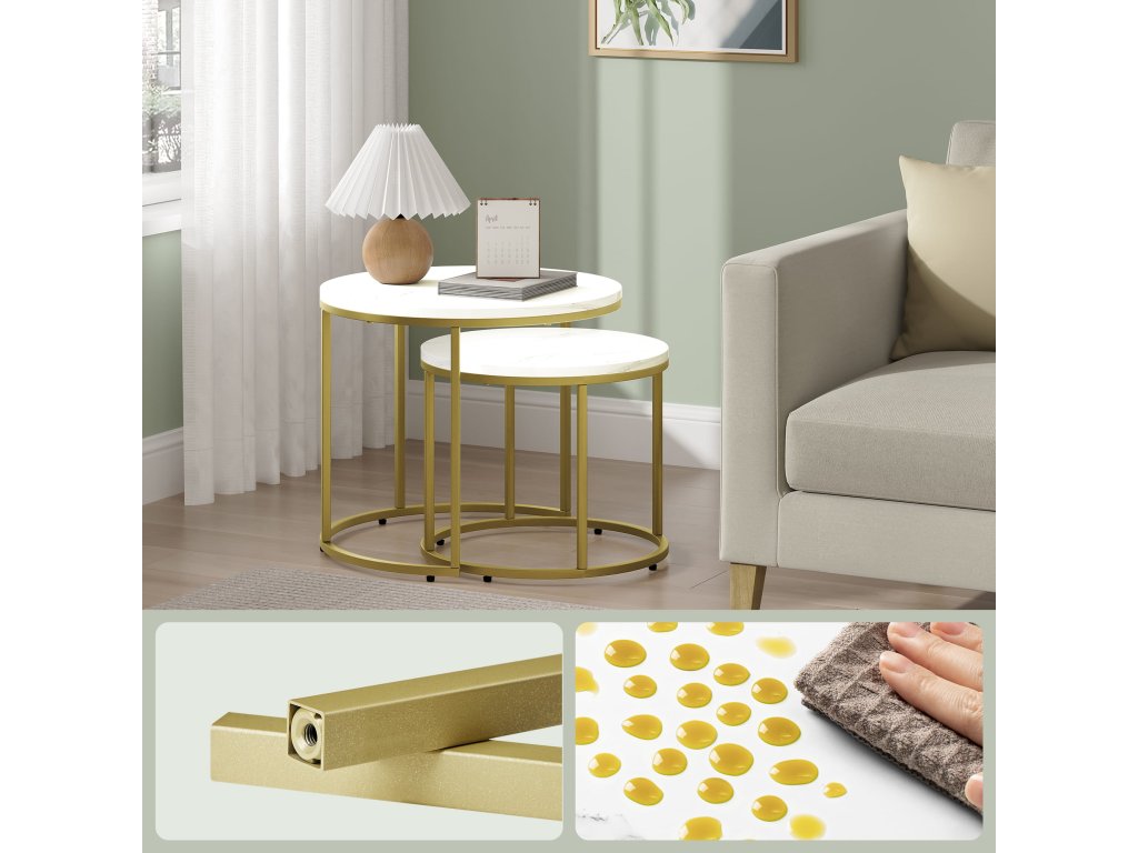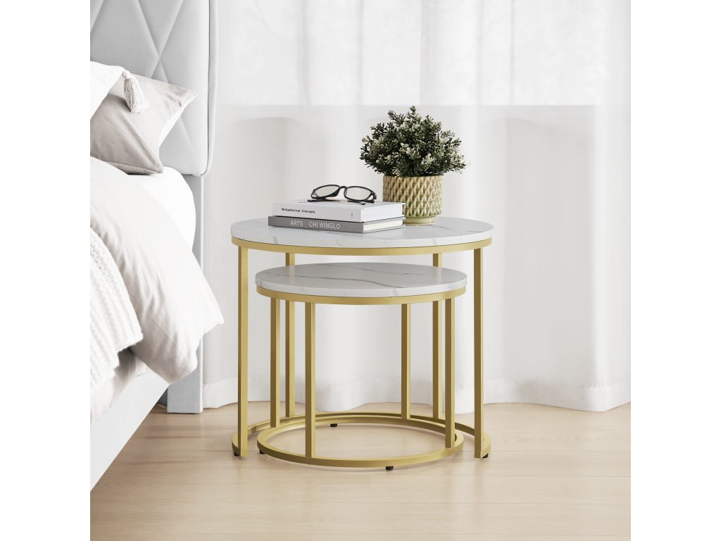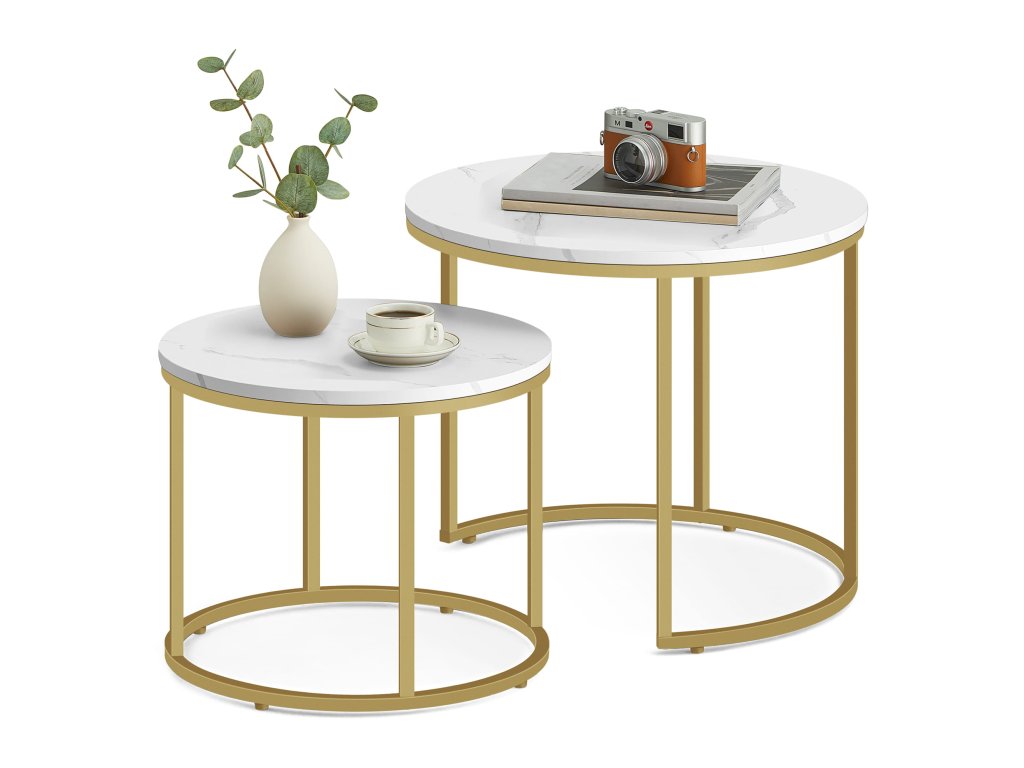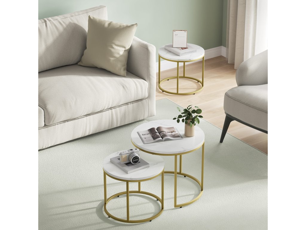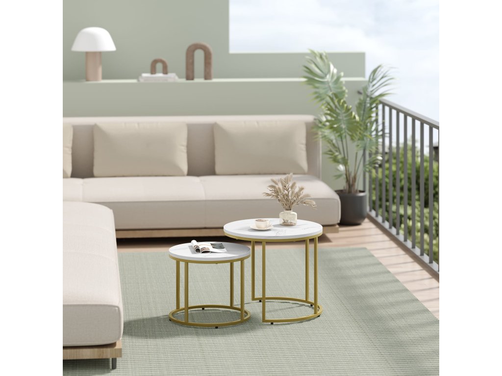Set 2ks kávových stolků - mramor/zlaté nohy