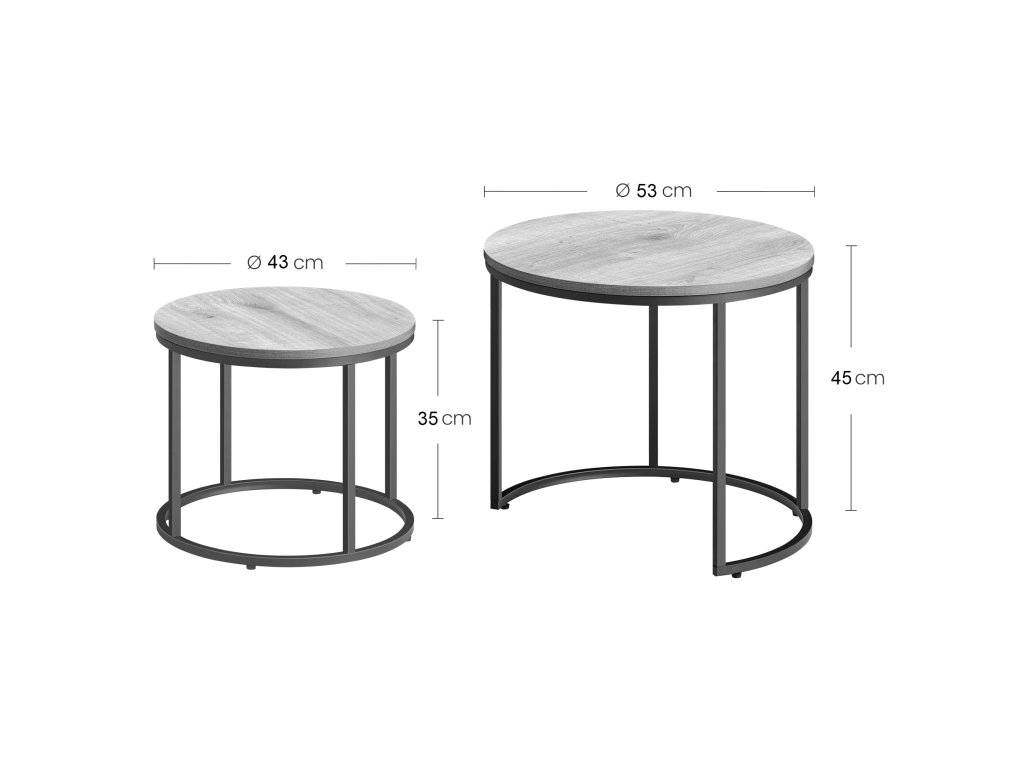 Představujeme vám dokonalý doplněk do vašeho obývacího pokoje - set dvou stylových konferenčních stolků, které jsou vyrobeny v moderním průmyslovém stylu.