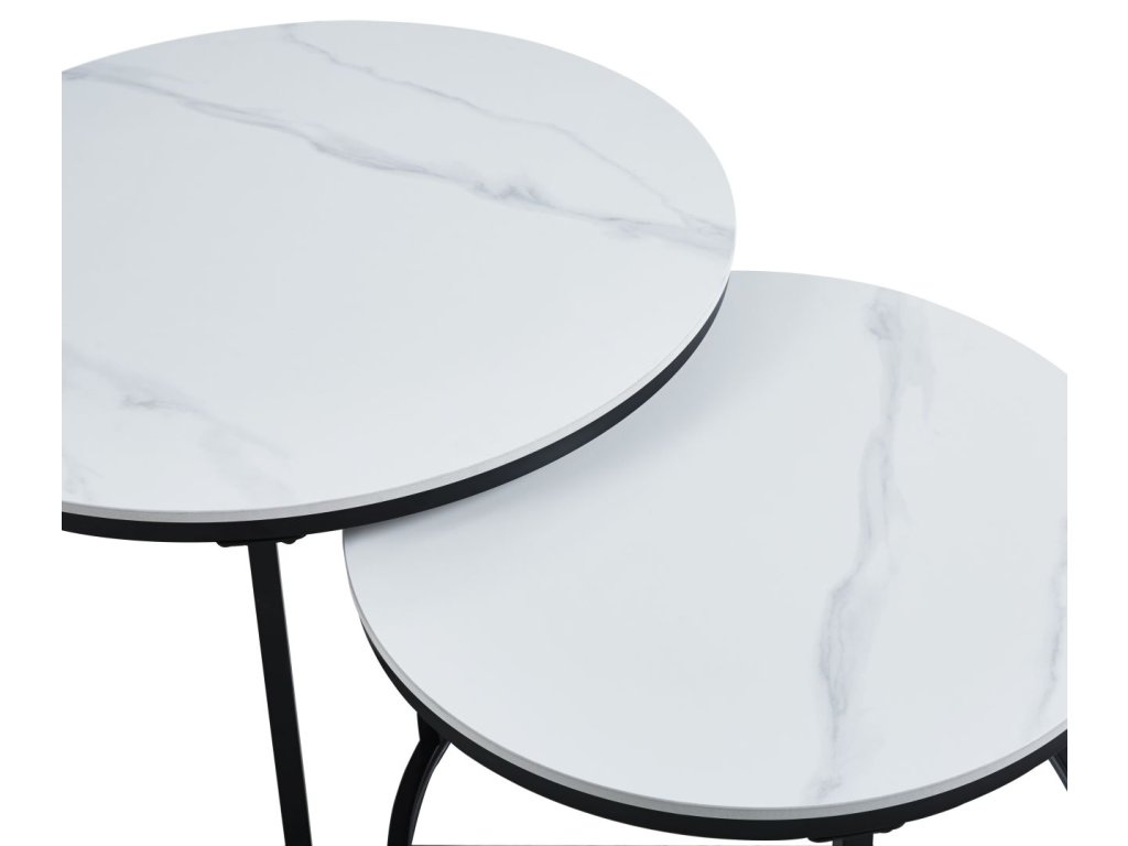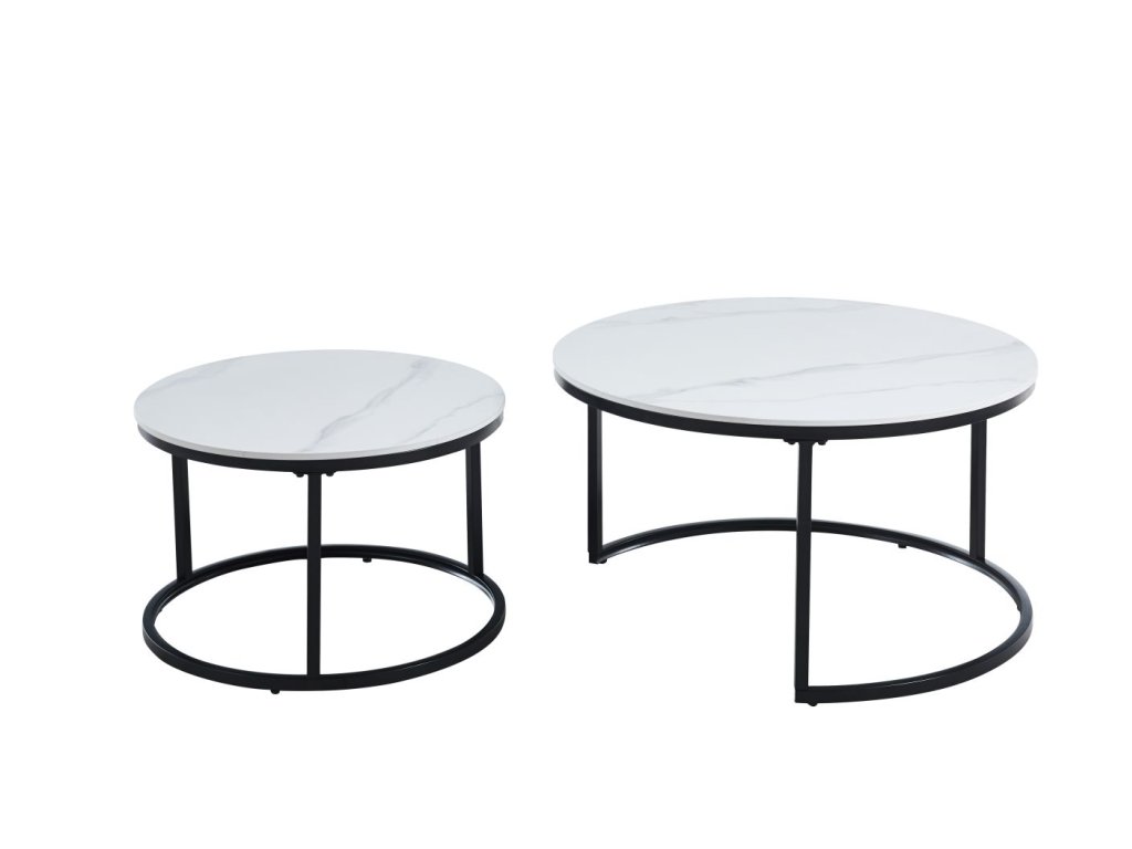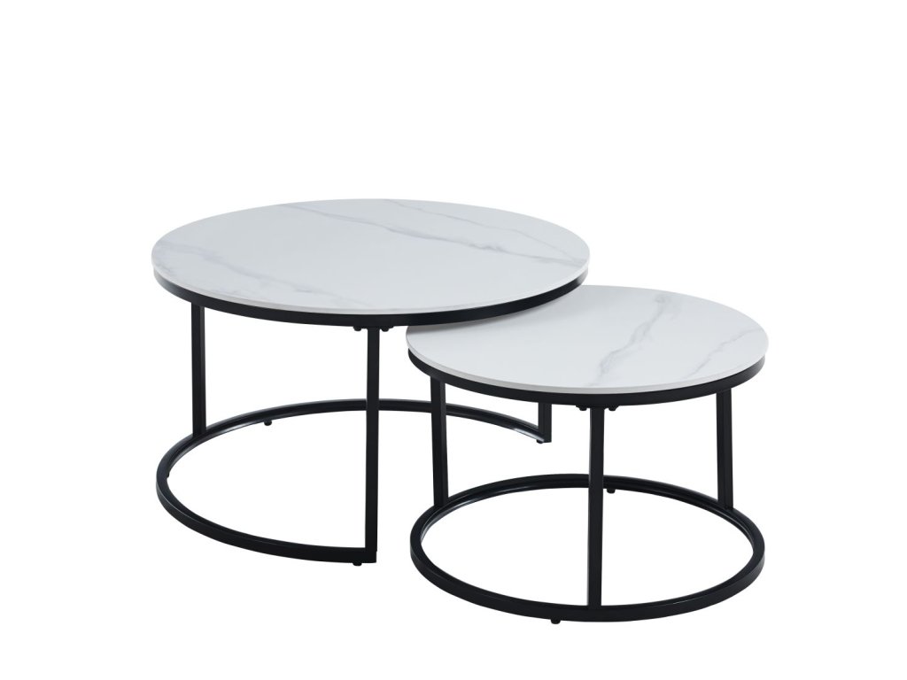 Set obsahuje dva kulaté stolky - větší o průměru 80 cm a výšce 44 cm, menší o průměru 60 cm a výšce 38 cm. Stolky lze prakticky zasouvat pod sebe, čímž ušetříte prostor, nebo používat samostatně podle aktuálních potřeb. Pevná konstrukce a kvalitní materiály zaručují dlouhodobou životnost.