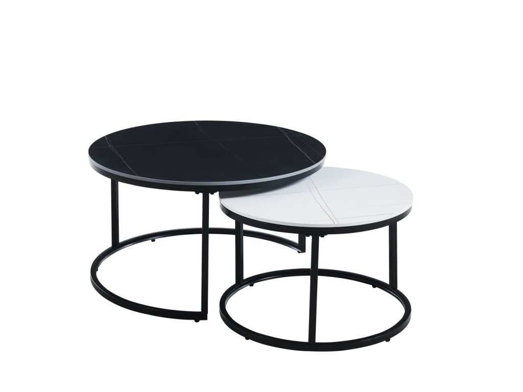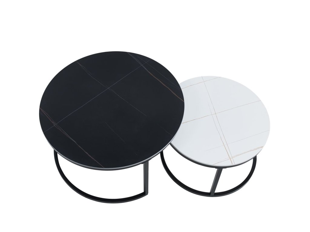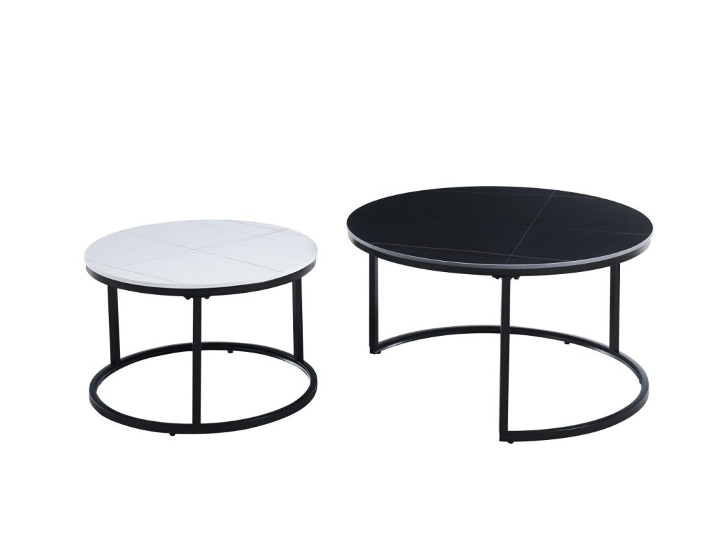 Set kávových stolků CERAMIC 80/60cm - černý/bílý