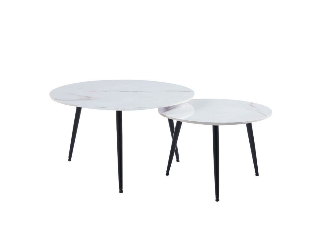 Set kávových stolků s mramorovým vzorem - bílý s černou konstrukcí