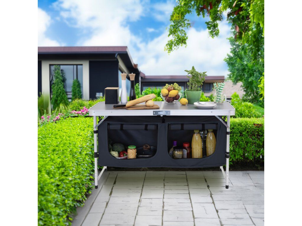 Pokud hledáte kempovou kuchyni, která zvládne přípravu jídla i stolování a přitom nezabere zbytečně moc místa v autě, tato skládací skříňka se stolem je volba, při které si na výletě skutečně odpočinete. Sundejte ji jednou, zabalte do kufříku a vezměte s sebou všude.