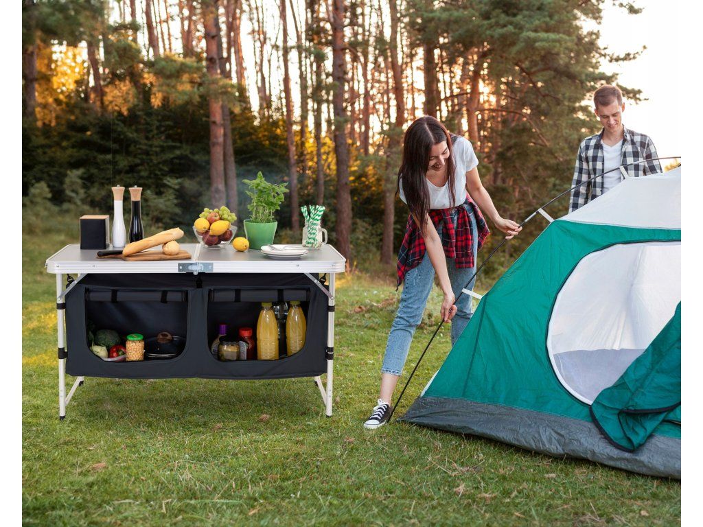 Skládací turistická kuchyňská skříňka se stolem je navržena přesně pro takové situace - rychle se rozloží, nabízí pracovní stůl i úložný prostor a po skončení výletu se celek složí do kompaktního kufříku.
