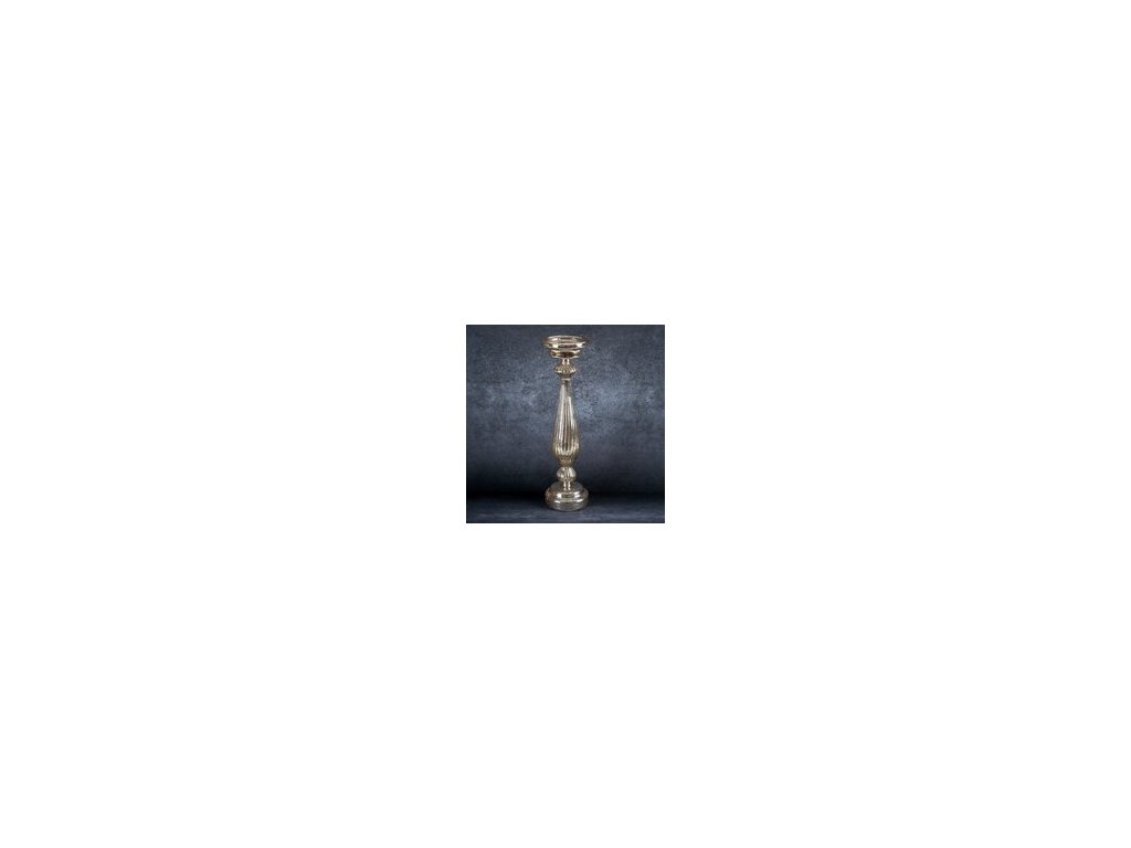 Skleněný svícen11 s LED světýlky 11 x 40 cm v šampaňské barvě
