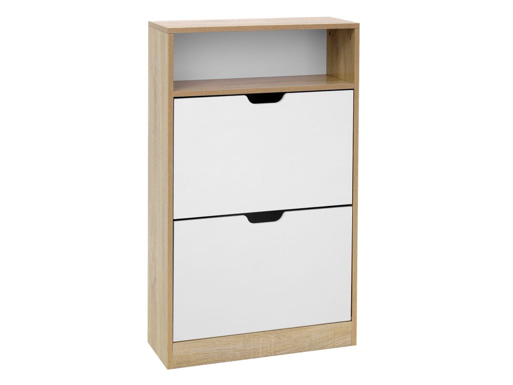 Skříň má 2 otevírací přihrádky s celkem 4 hlubokými policemi na boty, na které se vejde až 12 párů bot, a 2 police, na které můžeme umístit naše krásně zarámované fotografie, trofeje nebo dekorativní figurky a květiny v květináčích.