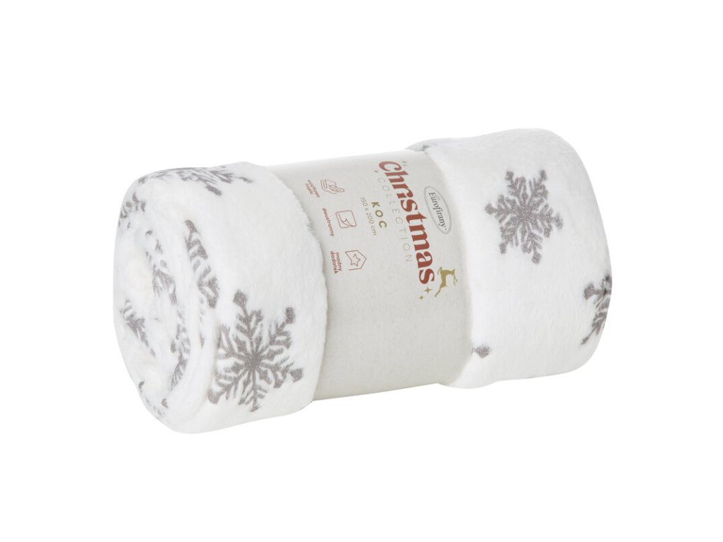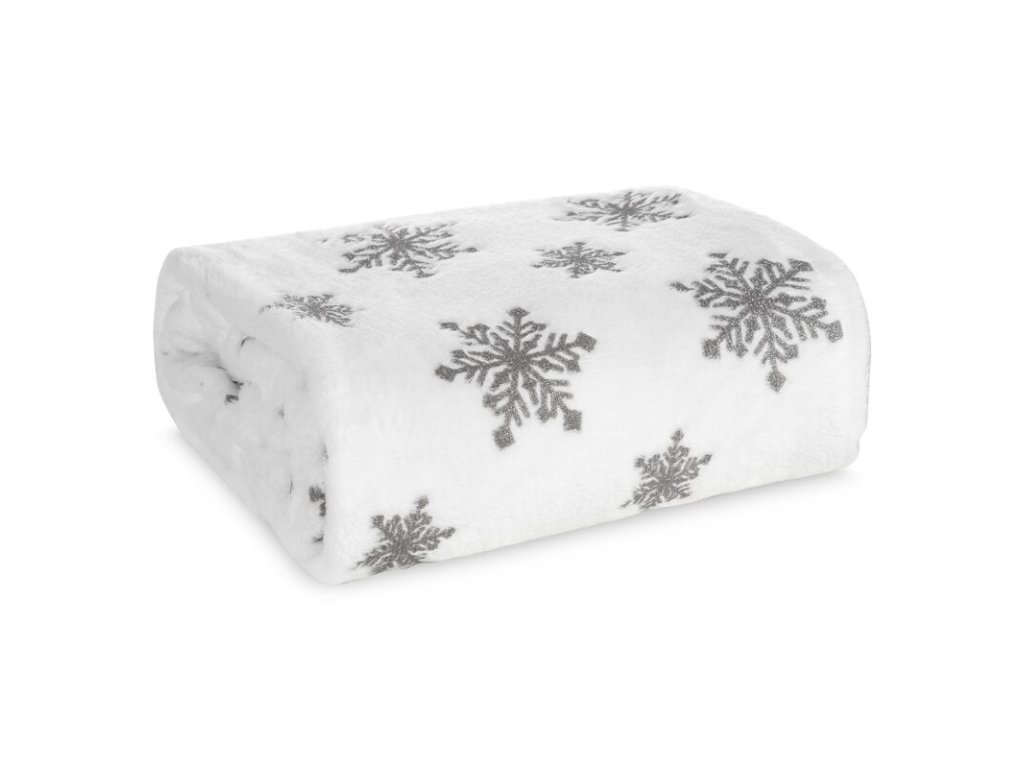 Vánoční deka z příjemného hebkého flísu zdobená sněhovými vločkami je dokonalým způsobem jak dodat interiéru zimní a vánoční atmosféru.