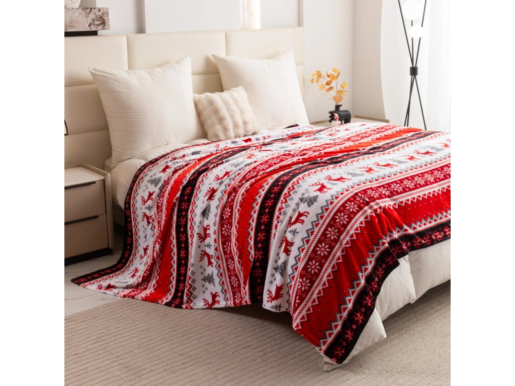 Zahřejte se během zimních večerů s touto hebkou vánoční dekou z mikrovlákna, kterou zdobí potisk klasického zimního vzoru.