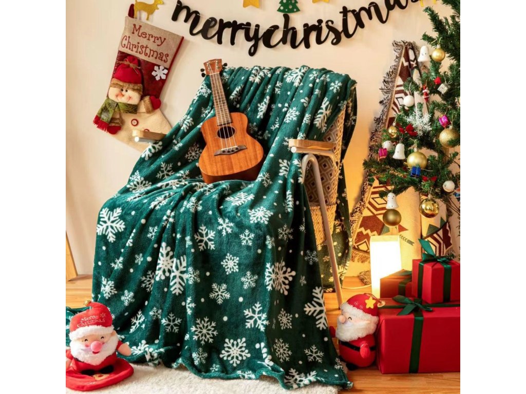 Zahřejte se během zimních večerů s touto hebkou vánoční dekou z mikrovlákna, která kombinuje svěží zelenou barvu s elegantním motivem bílých sněhových vloček. Je to ideální doplněk pro váš domov, který navodí pravou sváteční atmosféru.