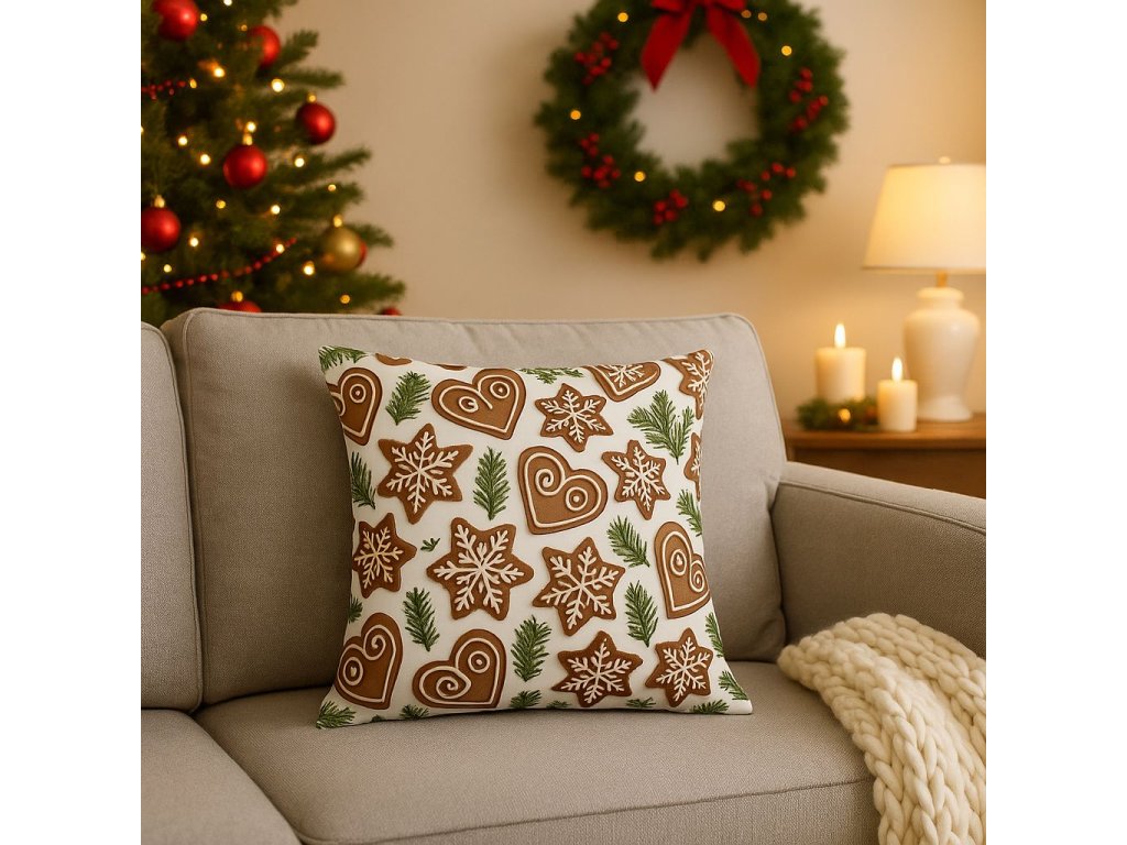 Vánoční dekorační povlečení na polštář s motivem perníčků