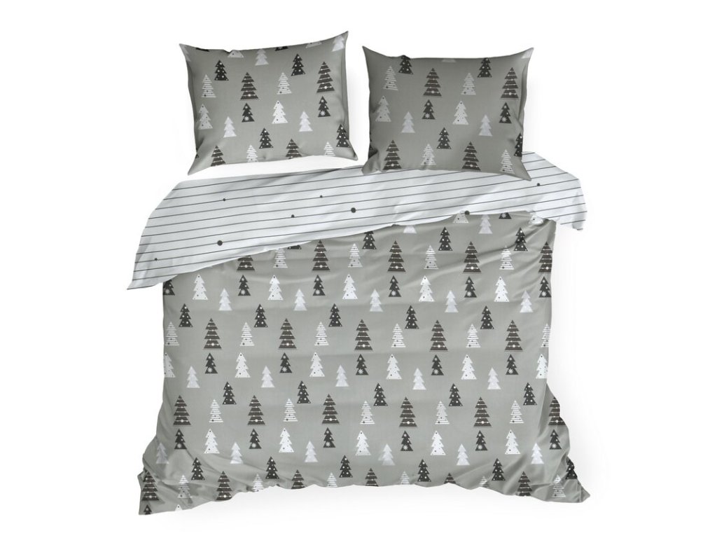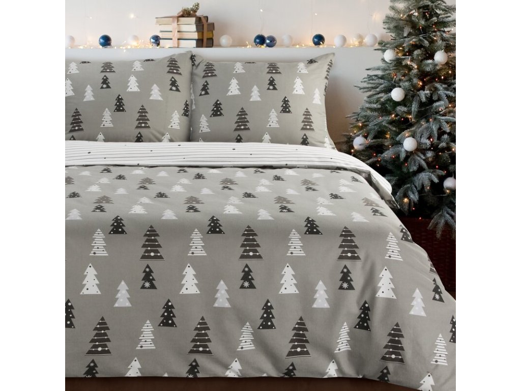 Vánoční flanelové ložní povlečení LENON v šedé barvě