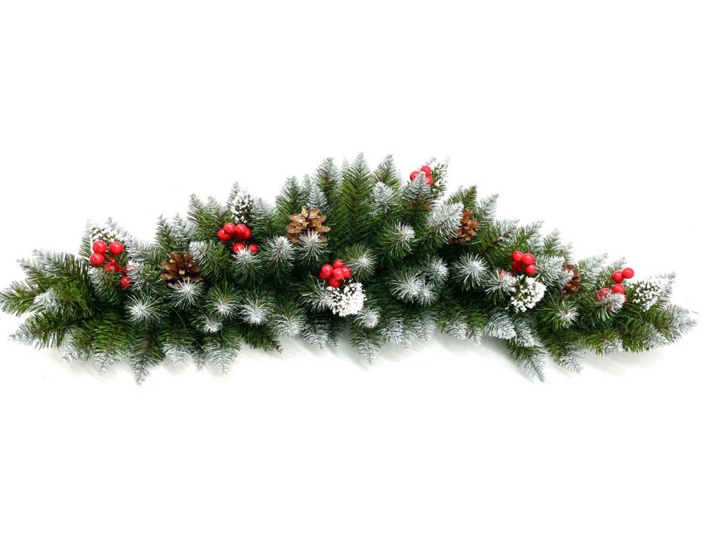 Vánoční girlanda s bílými zasněženími konci větviček je jednoduše ozdobená šiškami a jeřabinou. Můžete si ji dozdobit dle vlastní fantazie, nebo ji nechat v jednoduchosti.