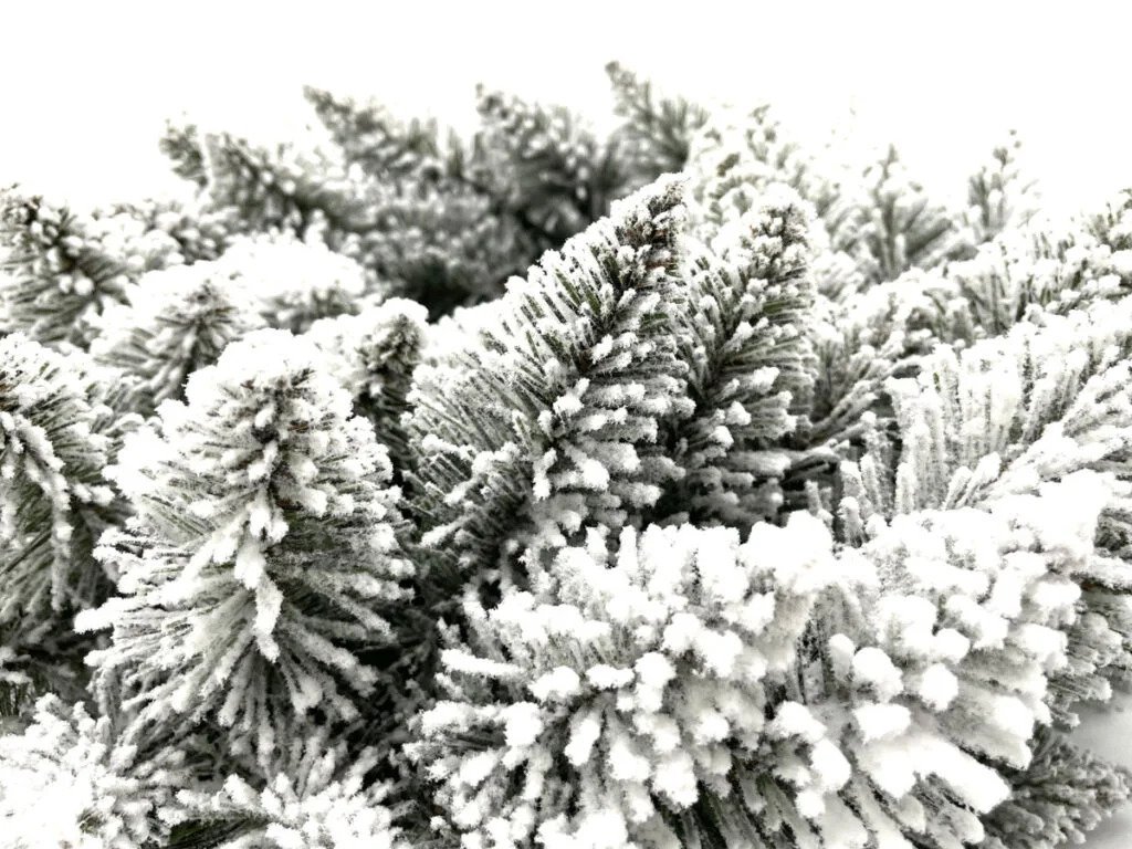 Vánoční girlanda hustě zasněžená umělým sněhem bez vánočních ozdob.