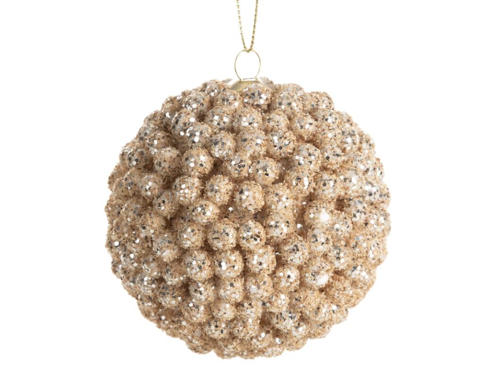 Vánoční koule na stromeček krémová s kuličkami - průměr 8 cm / 6 kusů