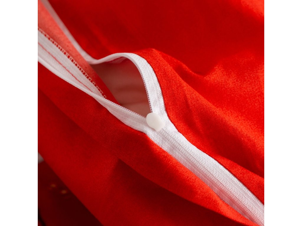 Charakteristická barevná scéna založená na červené barvě s bílými akcenty krásně zdůrazňuje zimní charakter a přináší do ložnice teplo a útulnost.