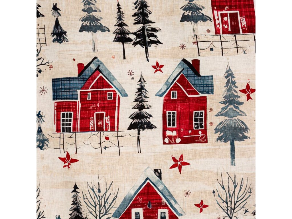 - vzor: jemný potisk zimní vesničky