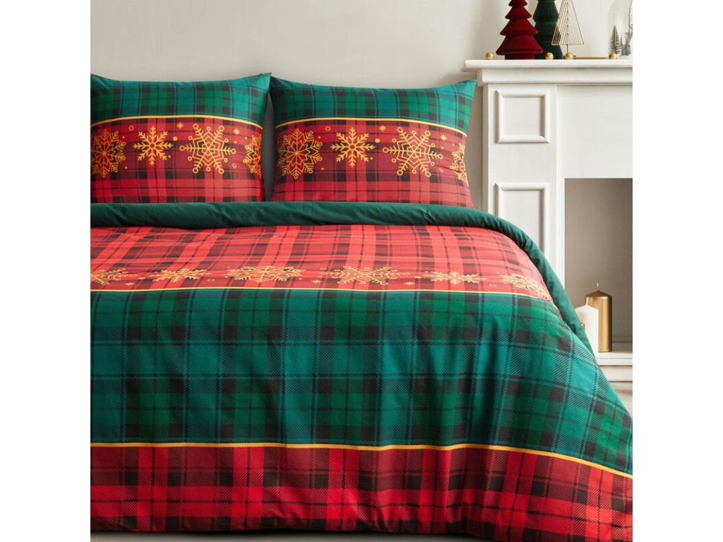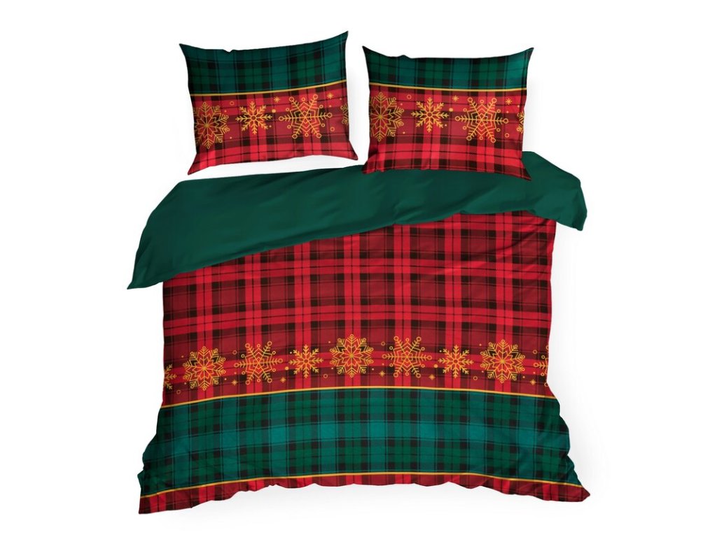 Vánoční ložní povlečení z bavlny ranforcé GLORY v zeleno-červené barvě