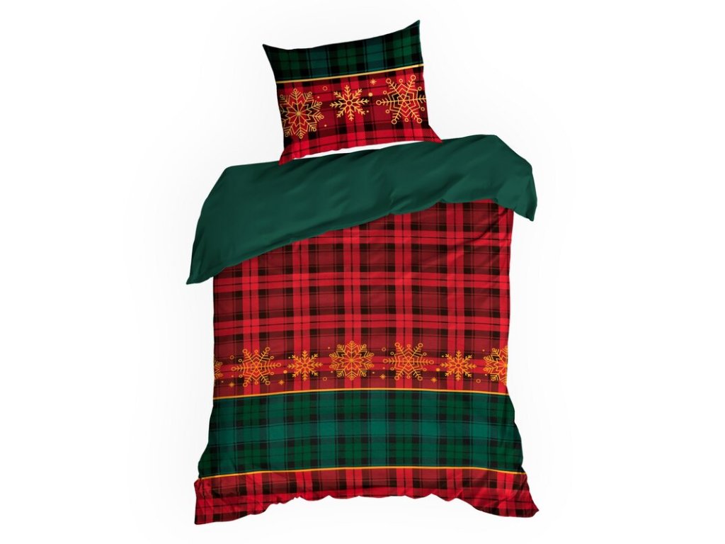 Kostkovaný potisk činí ložní prádlo stylovým a nadčasovým, dokonale doplňujícím zimní interiér.