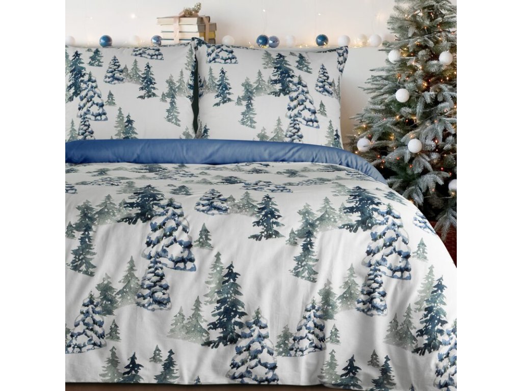 Vánoční ložní povlečení z bavlny ranforcé NATAL v bílo-modré barvě