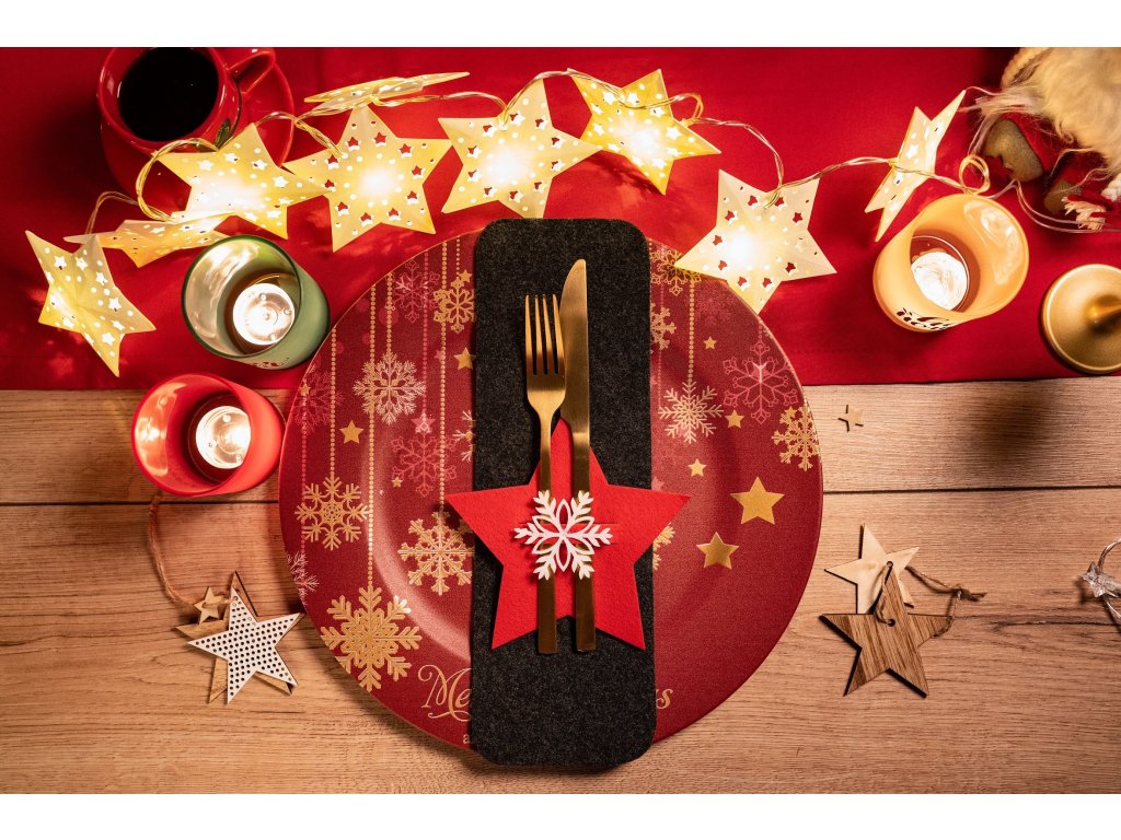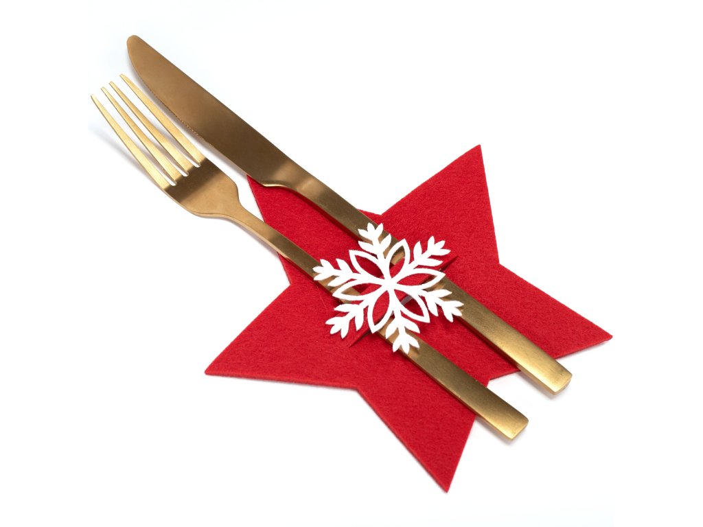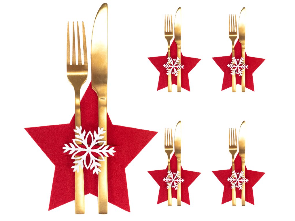 Vánoční obal na příbor červená hvězda - sada 4ks