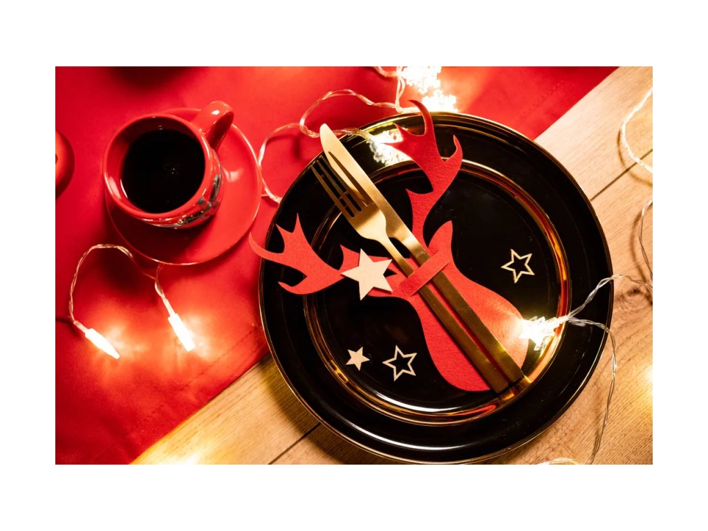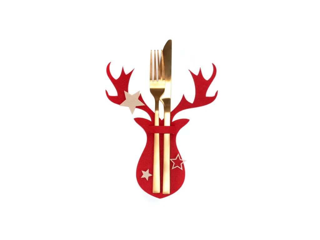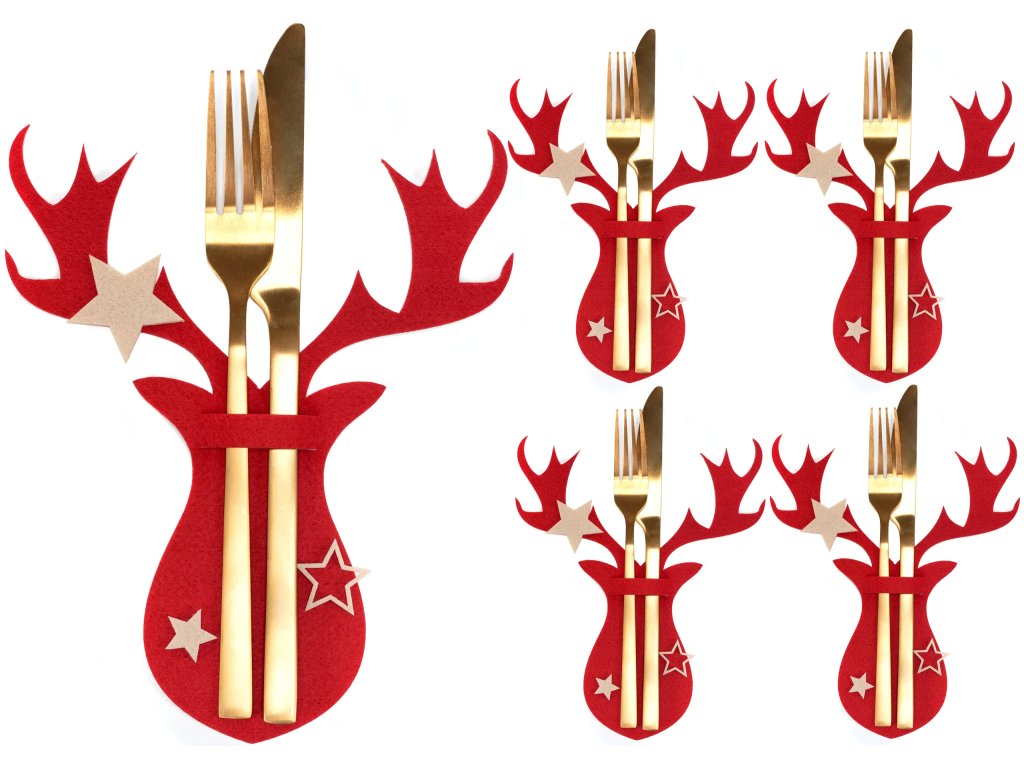 Vánoční obal na příbor červený sob - sada 4 kusy
