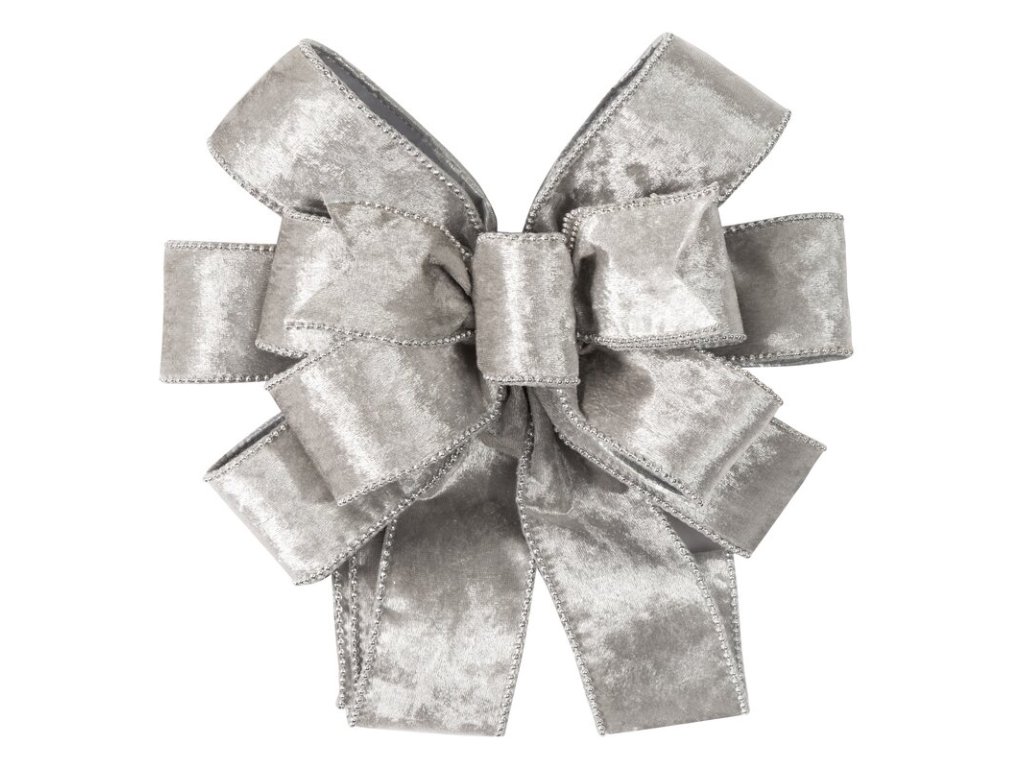 Vánoční sametová mašle s korálky - stříbrná