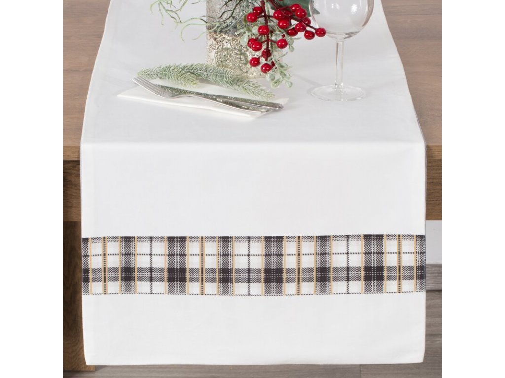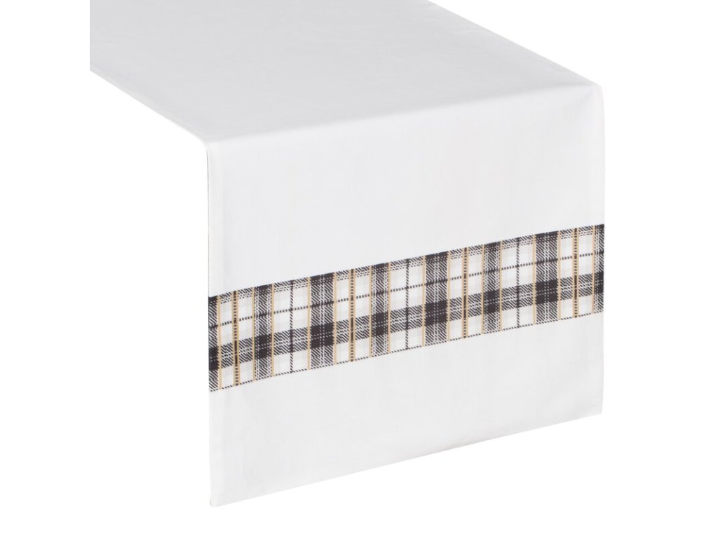 Sametový dekorační běhoun na stůl s vánočním motivem v krémově bílé barvě.