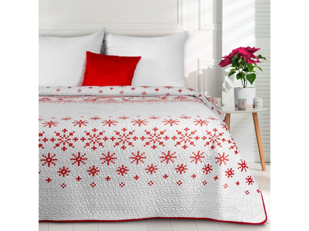 Vánoční sametový přehoz na postel z kolekce NOEL je navržen z jemného sametu s potiskem sněhových vloček ve skandinávském stylu.