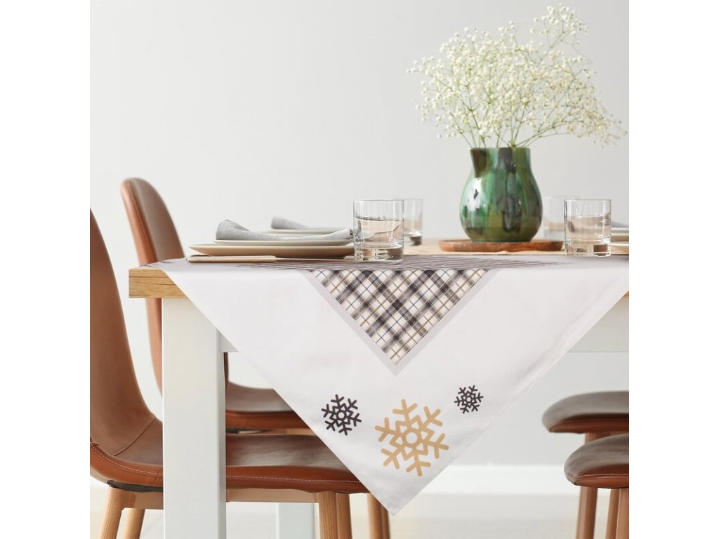Sametový dekorační ubrus na stůl s vánočním motivem v krémově bílé barvě.